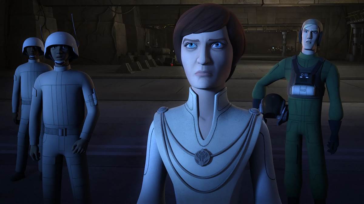 Episode 61: “Heroes of Mandalore (Part 2)" – Sabine comes to grips with the idea that the weapon she designed, which uses pulse energy to cook Mandaorians inside their Beskar armor, is being used by the Empire against her own people. Bo-Katan Kryze (guest star Katee Sackhoff) isn’t too thrilled about this revelation, but she and Sabine vow to infiltrate the Imperial headquarters on Mandalore and destroy the devastating weapon. After being captured by Tiber Saxon (Tobias Menzies), Sabine manages to reconfigure the device to target Imperial Stormtrooper armor instead of Beskar, facilitating the rebels’ escape before they destroy Saxon’s Star Destroyer. Then Bo-Katan accepts the Darksaber from Sabine, becoming the new ruler of Mandalore.