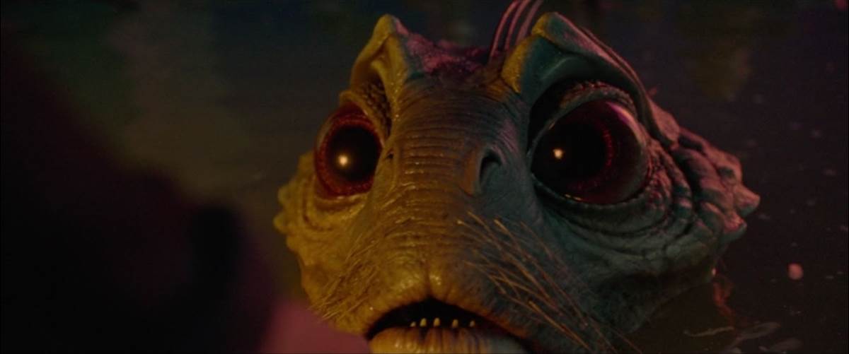 Back in the Immemorial City, Lili tries to lure Airk into an eerily glowing passageway, though he resists– eventually fighting off her romantic advances as well, reaffirming his love for Dove (who we now know as Elora Danan). This concludes with Airk realizing that Lili is not who she claims to be, and after a noble effort of running away and refusing her call some more, he finally gives in, entering the temple. On the Shattered Sea, our protagonists have escaped on Zeb’s boat and find themselves on an island in the middle of nowhere, where Graydon (Tony Revolori) bonds with the friendly aquatic creature pulling their vessel– an impressive animatronic puppet, presumably from ILM– and we get an extended training sequence. Elora improves her magical prowess with the help of Willow (Warwick Davis), Kit and Jade (Erin Kellyman) spar and at long last get to make out, and even Prince Graydon discovers he may have some latent mystical abilities of his own.
