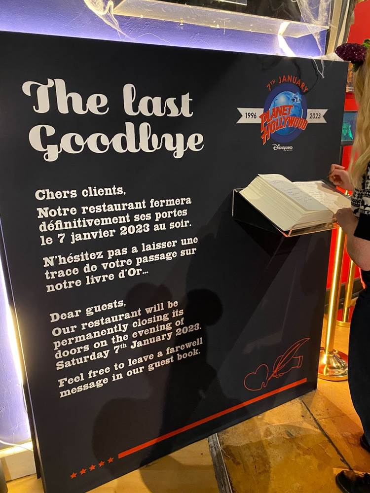 Today, January 7th 2023, marks the official last day of operation for the iconic Planet Hollywood restaurant at Disneyland Paris, as part of previously announced plans to completely revamp the Disney Village This overhaul includes many other changes and closures, such as the transformation of Planet Hollywood’s neighbor King Ludwigs, also closing today, to reopen in February as “The Royal Pub". For many guests visiting Disneyland Paris, Planet Hollywood has been the first thing they saw upon arriving at the resort for the last 27 years, due to its impressively large exterior globe and proximity to Marne-La-Vallée station entrance.