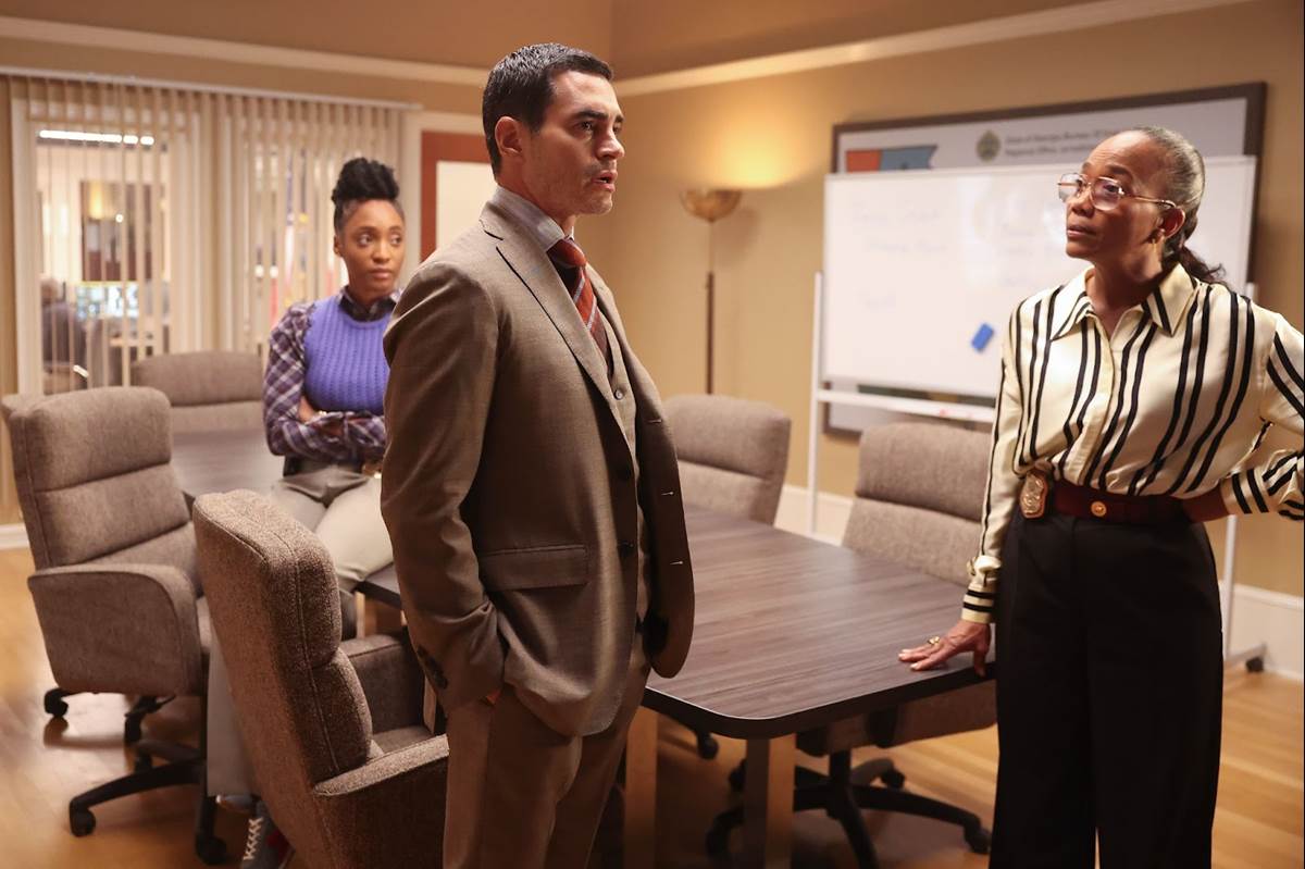 In a conference room at the Georgia Bureau of Investigation (GBI), Amanda Wagner (Sonja Sohn) flips through images of the burned body discovered on the boat, showing them to Will Trent (Ramón Rodríguez) and Faith Mitchell (Iantha Richardson). The deceased is a man named Randy who was shot twice in addition to being burned. Faith makes a comment that it could’ve been ghosts, describing Lake Lanier as haunted by a displaced Black community. Amanda gives Will and Faith orders to go to Lake Lanier, adding that she hopes the town’s new sheriff is less racist than the last. Before they hit the road, Will gives Nico (Cora Lu Tran) detailed instructions for Betty’s care. Their conversation is interrupted by a phone call from a woman named Ivy, but we don’t get to hear any of the call beyond the initial greeting.