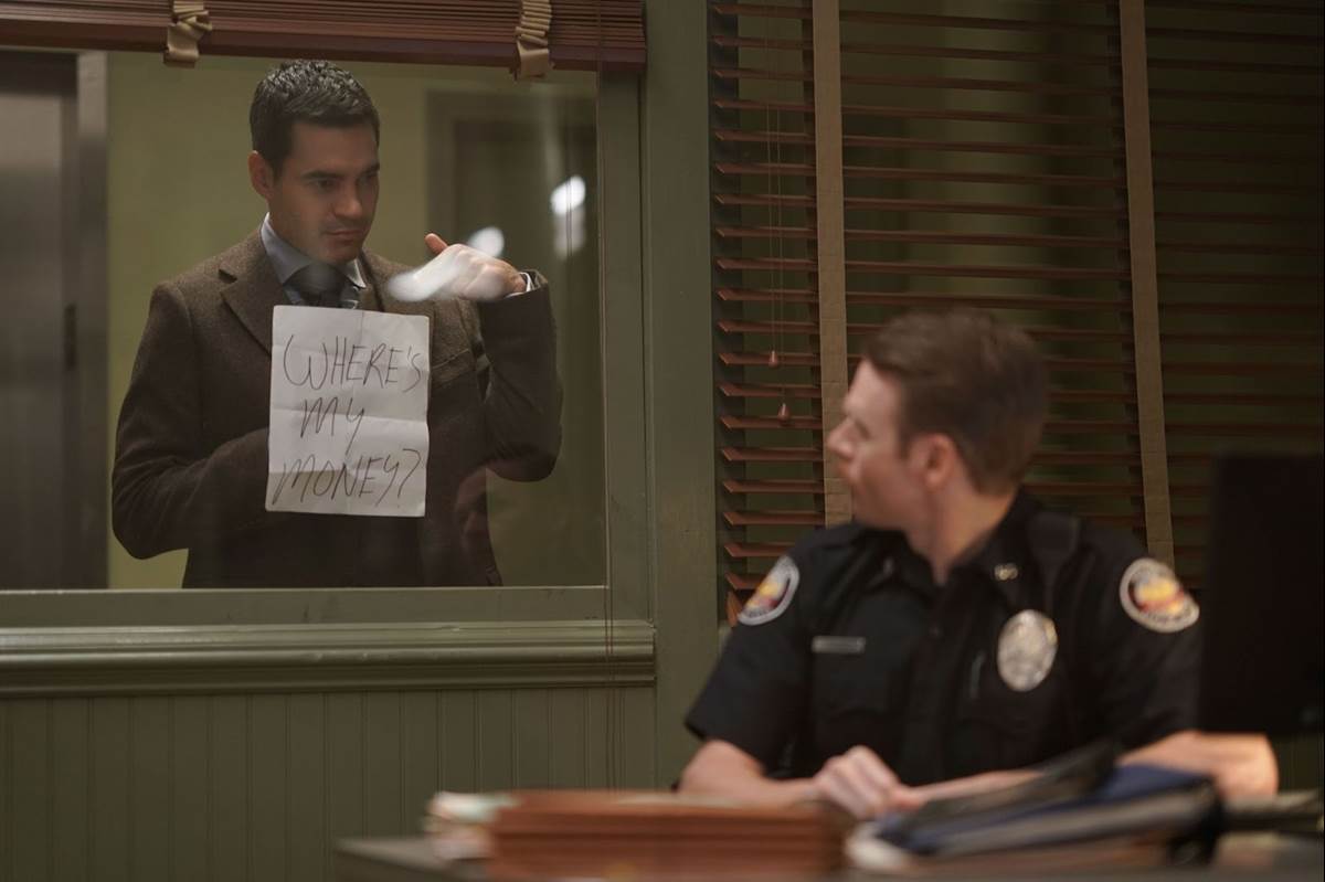 Walking through the APD, Will knocks on the window of Officer O’Hara’s office and holds up a sign asking where his money is, gloating. Doors open and Ava is being released from jail. Will meets her by the elevators and she asks if he’d like to hang out sometime. He tells her he’s not ready to jump into anything yet. She tells him it’s never too late if he changes his mind.
