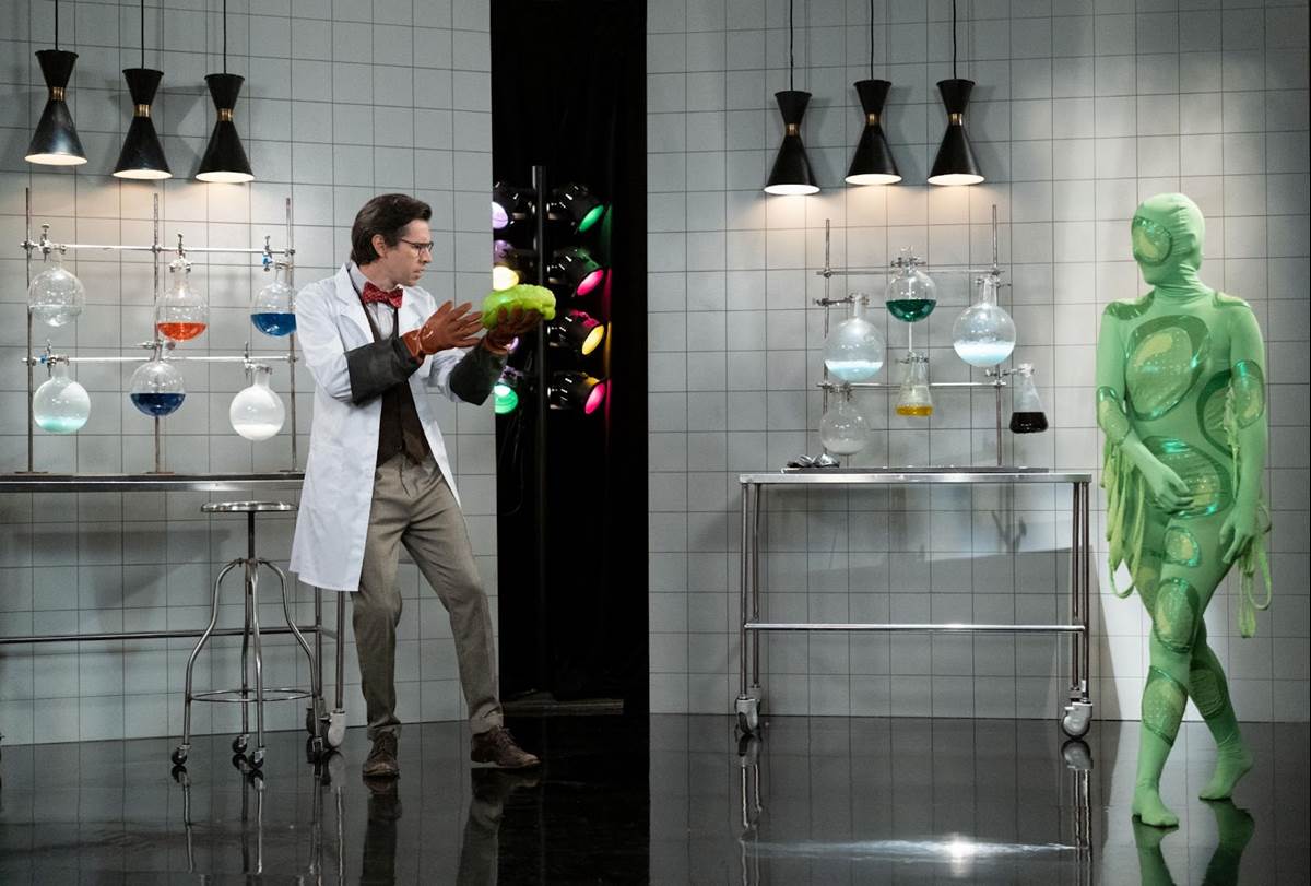 Charlie and Valentina (Tom Ainsley and Francia Raisa) are cleaning up her items at his apartment when Ellen (Tien Tran) comes out talking about her date with Rachel (Aby James) and how they need to find another couple to join them at an exclusive bar. (This leads to a hilarious joke about a musical version of Flubber, that is silly and just perfect for a cutaway moment.) Valentina offers to go, and much to Charlie’s dismay, finds a date instantly.