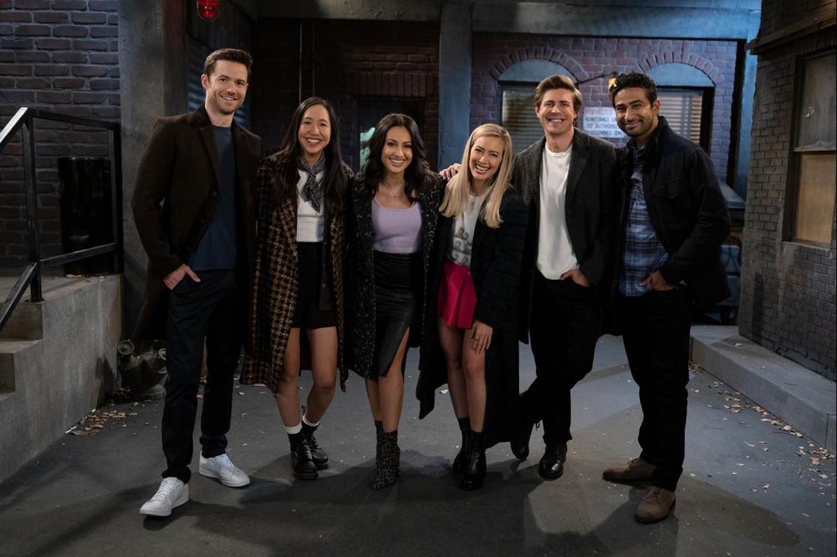 Back at the apartment, Valentina, Charlie, Ellen, Sid, and Sophie (Francia Raisa, Tom Ainsley, Tien Tran, Suraj Sharma, and Hilary Duff) are watching the broadcast with Ellen cheering her brother on. Charlie tells Ellen that even though it’s exciting for her, this was painful for someone else in the room. Sophie naturally chimes in that she was fine, and Charlie retorts that everyone knows that she can toggle between emotions and men, but it was Sid that he was talking about. Sid is confident that he and Jesse will get through their disagreement.
