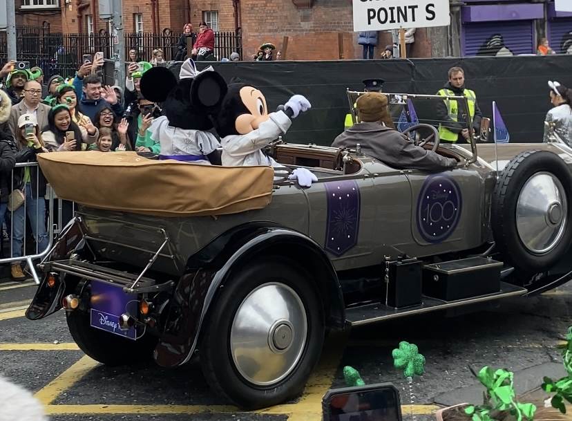In a surprise visit today, Mickey And Minnie arrived as special guests in the St. Patrick’s Day Parade in Dublin, Ireland, in honor of Disney’s 100th anniversary. The iconic duo donned their brand new Disney100 platinum outfits for the first time( in Europe) along the parade route, entertaining up to half a million guests for over 2 hours.