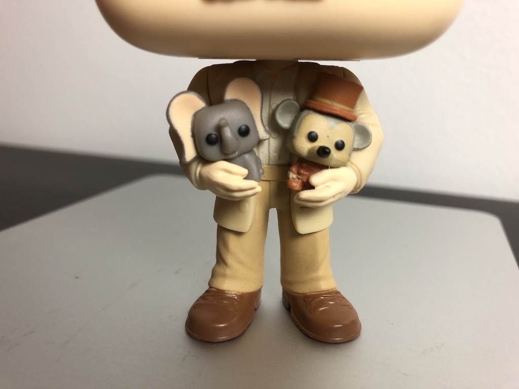 For this look he’s dressed in a tan, khaki and brown ensemble, and as is immediately obvious, he’s holding two plush toys. In his right arm is Dumbo and in his left is Timothy Q. Mouse. Dumbo of course has large oversized ears you can’t miss, while Timothy is wearing a red conductor’s uniform. The Pop! itself is great and is not a bobble head, though the head can be turned ever so slightly from side to side. It looks good both inside and out of the box (gasp!) and can stand on its own without issue.