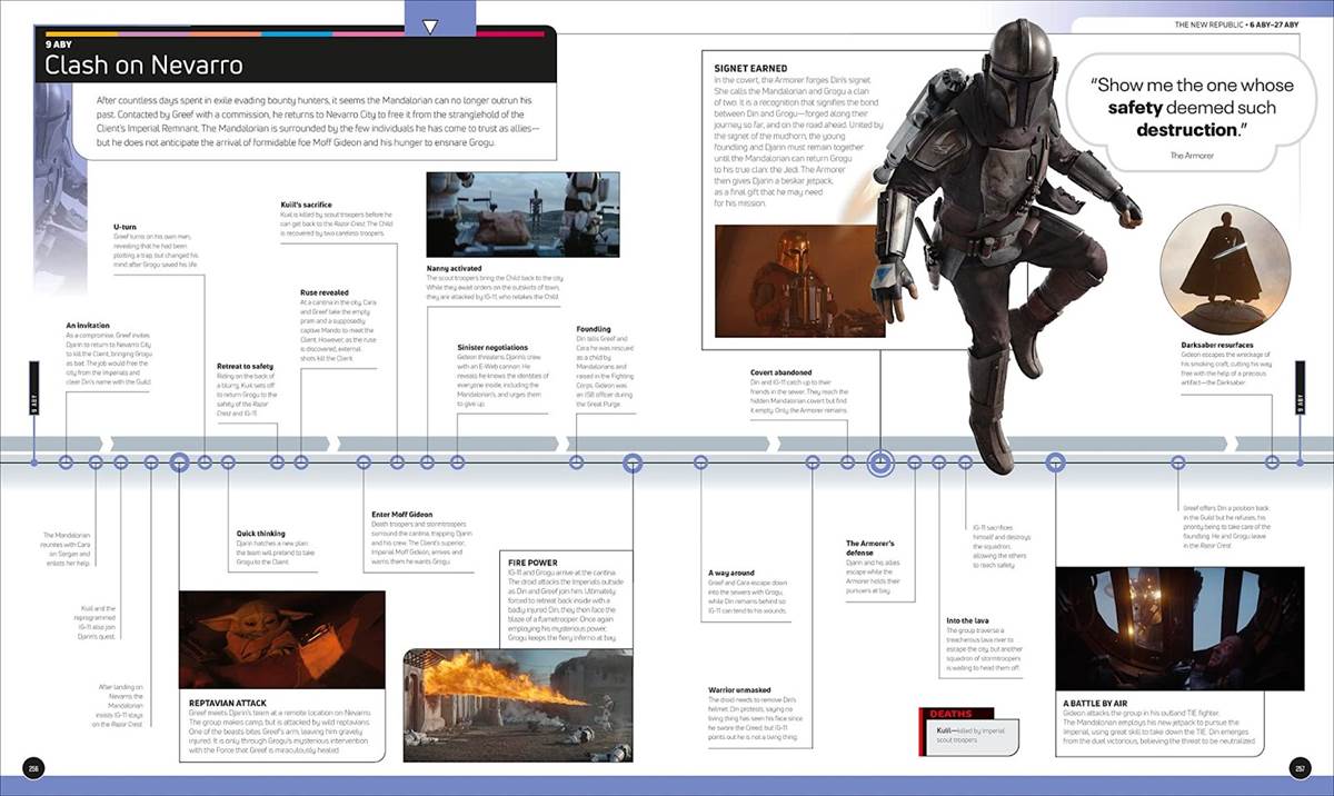 As the extended title implies, Timelines starts with the “Early History" of the Star Wars chronology and works its way through the High Republic era, the “Fall of the Jedi" (read: the prequel era), the “Reign of the Empire," the “Age of Rebellion" (the hallowed Original Trilogy), the New Republic period, and the “Rise of the First Order" (the time during which the sequels take place). Each section is exhaustively broken down into individual bullet points that details precisely when just about every major– and oftentimes minor– event in the ongoing Star Wars saga took place, all relative to the Battle of Yavin as seen in the original Star Wars film, also known as Episode IV - A New Hope. If that sounds confusing to you, I can’t promise that this book will make too much more sense, but I do think if one were to really take their time both consuming the actual material itself and cross-referencing it with this volume, they’d have a much better understanding of how these galaxy-spanning occurrences took place and related to each other.