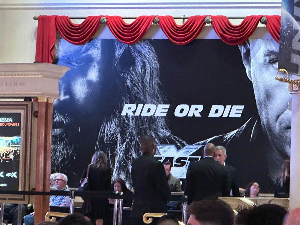 Jordana Brewster, Michelle Rodriguez, Tyrese Gibson, and Sung Kang gave a quick crash course on the nine films in The Fast and the Furious franchise that lead into the tenth installment. Michelle and Jordana highlighted the fact that it’s the longest-running film franchise to include original stars, and also the only major franchise to attract four Oscar-winning actresses (Fast X adds Rita Moreno and Brie Larson to the cast, with Helen Miren and Charlize Theron also in the series). They then introduced Vin Diesel, who went off-script for about ten minutes to share his gratitude to theater exhibitors and announce that Fast X will be a two-part film, with the second part coming in 2025.