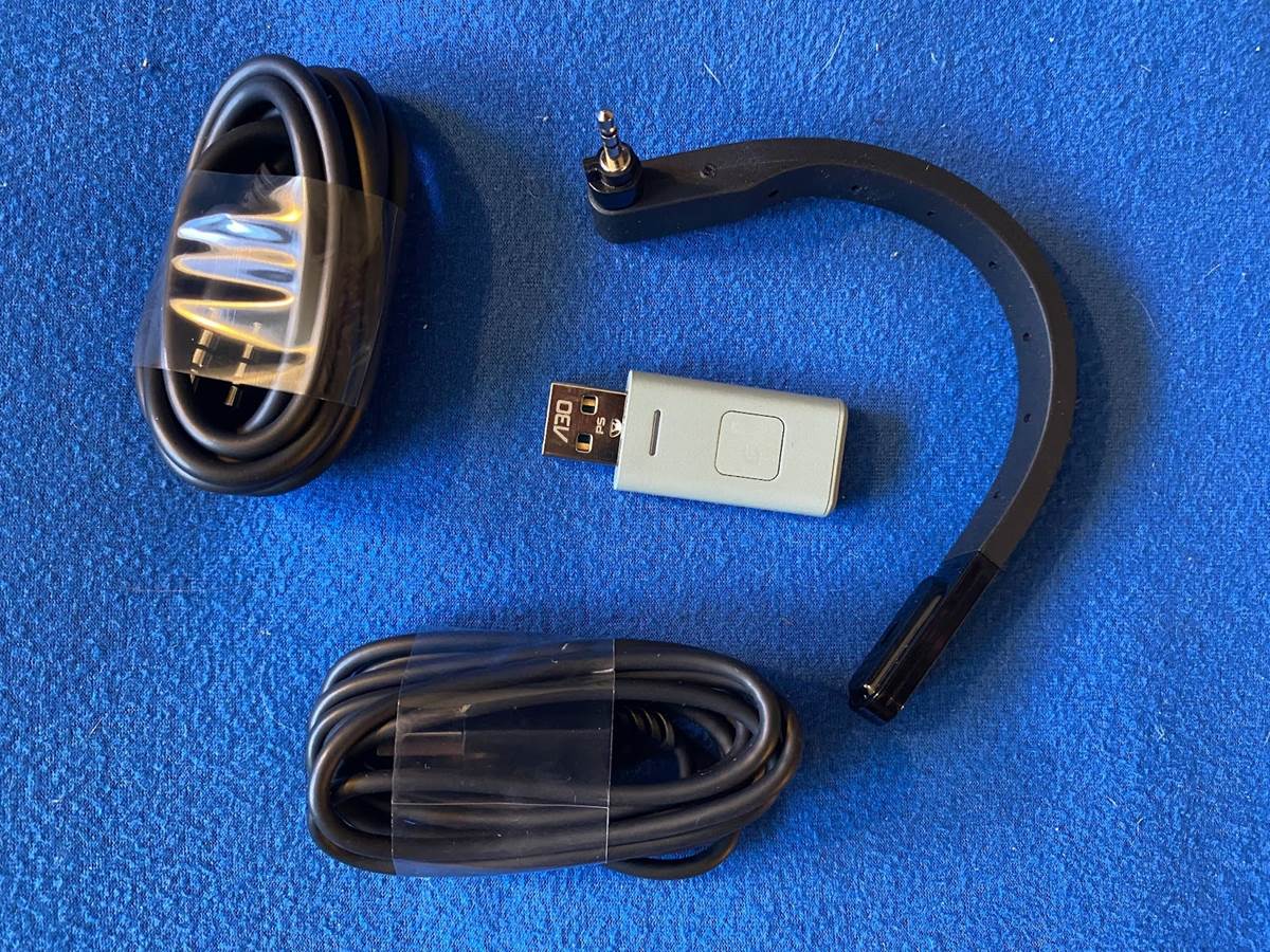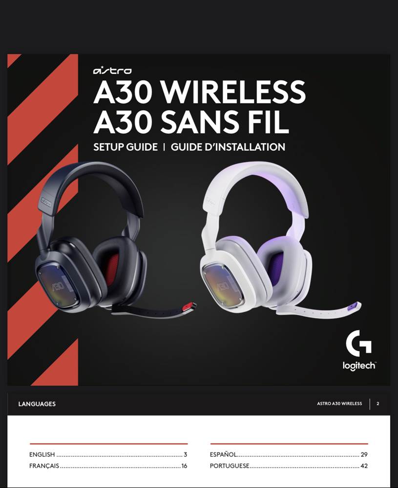 Heck, even the box feels pretty special, especially if you’re as big a fan of The Mandalorian as I am. One side is emblazoned with Din Djarins Mudhorn signet, while the other features a simple, black-and-white Mandalorian helmet insignia and the logos for Logitech’s Astro sub-brand. The headset is advertised as sporting a USB-C port for charging, a 3.5mm audio port for headphone jacks, multi-function control, a mute switch, and multiple audio source inputs, plus it comes with a USB wireless transmitter for use in external devices such as your Xbox or PlayStation consoles at home. As if that weren’t enough, there’s also an integrated microphone built into the headset and a detachable boom microphone that’s poseable to wrap around the front of the user’s mouth. And The Mandalorian speaker tags on both sides of the headset are customizable, meaning they can be swapped out with other designs as desired, although why one would want to lose the very cool silhouetted imagery of Din Djarin wielding the Darksaber is beyond me. A paper insert includes a scannable QR code that brings users to an installation guide and setup manual online. The Mando’a writing inside the box cover reads “The Clan of Two," which is a reference to the show and the characters of Djarin and Grogu, the latter of which also appears on the box art.