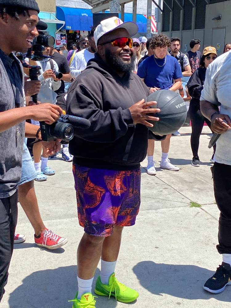 Once the afternoon got going, activities included skills challenges, a dunk contest, and more. The director of this 2023 version of White Men Can’t Jump (which is a remake of the 1992 movie of the same name starring Wesley Snipes and Woody Harrelson), Calmatic, was soon on hand to participate in the outdoor fun and throw some hoops himself.