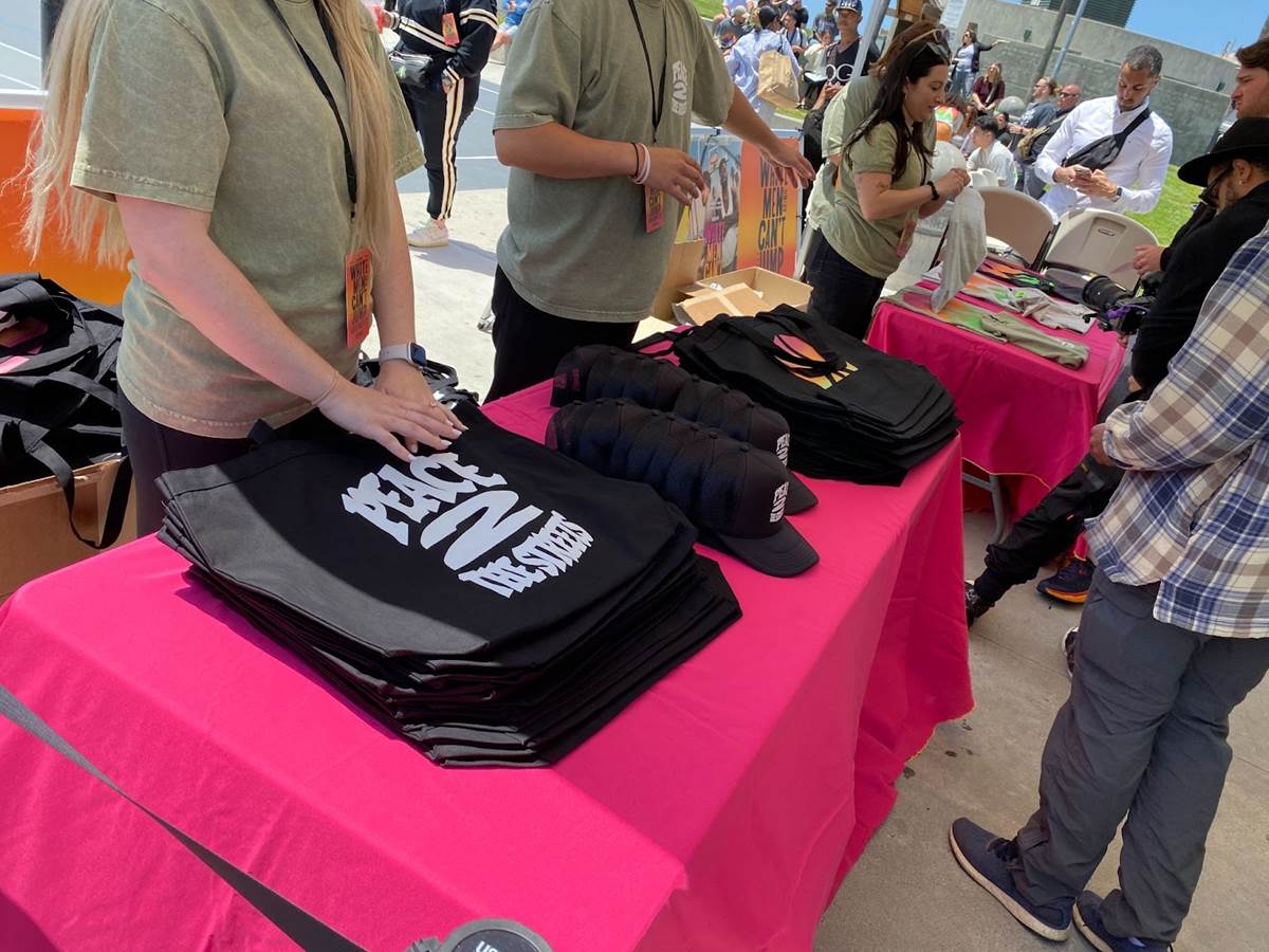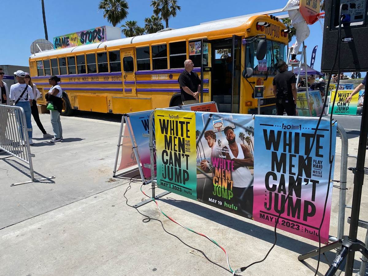For this White Men Can’t Jump promotional event, Hulu partnered with the non-profit organization Hoopbus, which was available onsite for guests and fans to play some ball, right next to the famous Venice Beach Courts just steps from the Pacific Ocean. Then the first 100 participants to show up for the event at 12:00 noon were treated to complementary merchandise inspired by the new film, and given the choice between a White Men Can’t Jump hat, tote bag, or t-shirt.