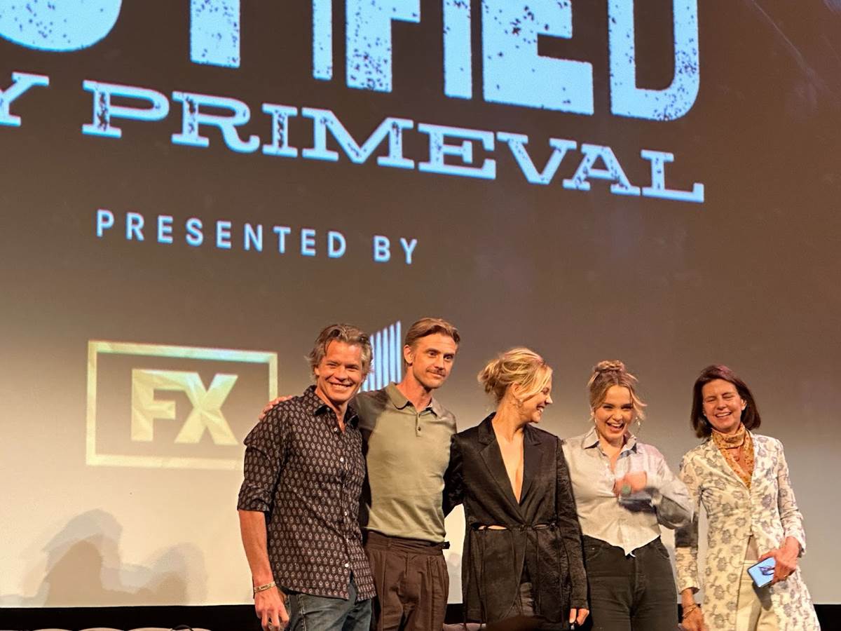 Season 12 of the ATX Television Festival kicked off tonight with a special screening of FX’s Justified: City Primeval ahead of the show’s July 18th premiere. In attendance were stars Timothy Olyphant (Raylan Givens), Boyd Holbrook (Clement Mansell), Adelaide Clemens (Sandy Stanton), Vivian Olyphant (Willa Givens), plus executive producer Sarah Timberman. The post-screening panel was moderated by Daniel Fienberg from The Hollywood Reporter.