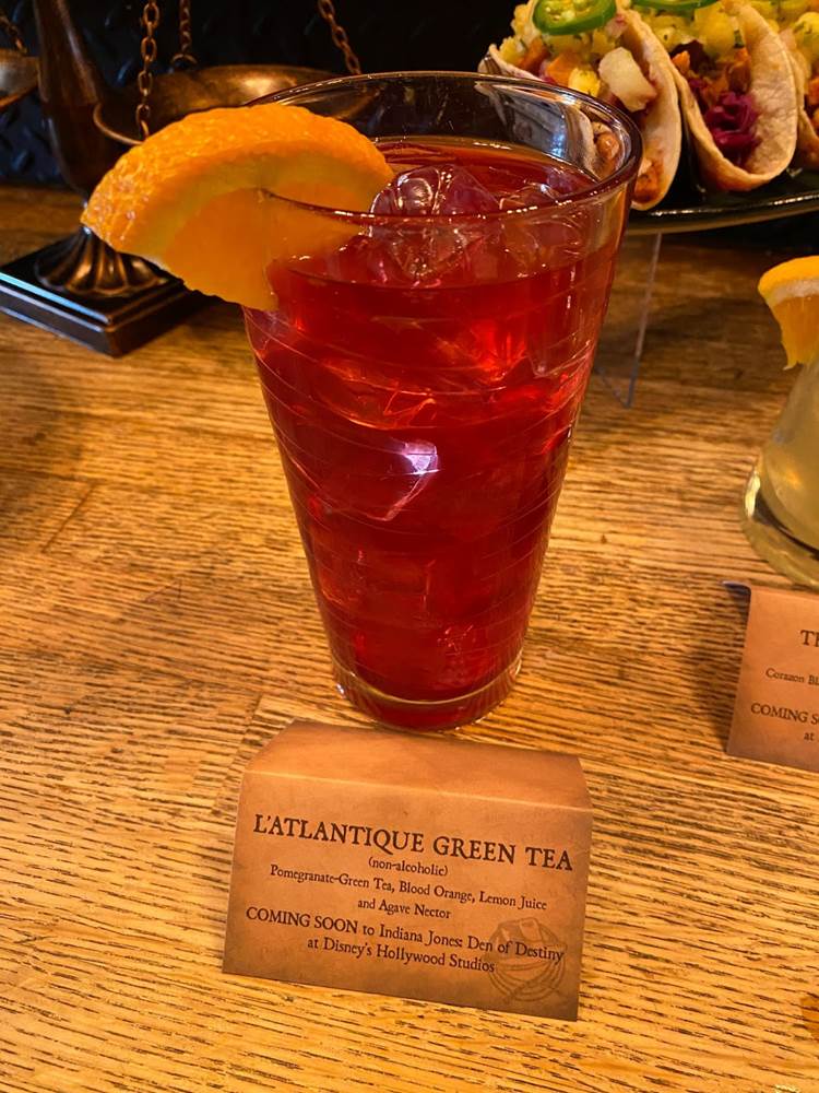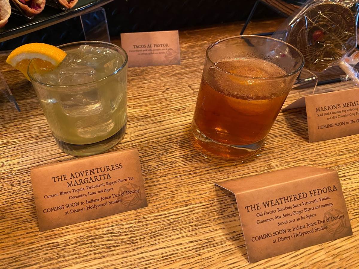 During the event, we also learned about the new Indiana Jones: Den of Destiny beverage outpost arriving at Disney’s Hollywood Studios this summer– and we got to try the three drinks that will be offered there (the L’Atlantique Green Tea, the Adventuress Margarita, and the Weathered Fedora).