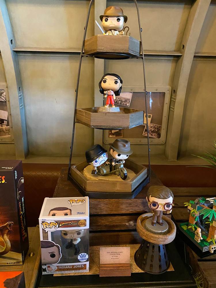 Of course, besides the new Jock Lindsey’s menu, this event was also intended to get the word out there about all the adventurous merchandise available through a variety of Lucasfilm licensees, tied into the entire Indiana Jones franchise. Inside the Hangar Bar there was a big display of items from shopDisney, Hasbro, Geeki Tikis, RockLove, Gentle Giant, Hallmark, Regal Robot, RSVLTS, SalesOne, Loungefly, Reyn Spooner, Dorfman Milano, Heroes & Villains, Funko and Funko Games, and LEGO.
