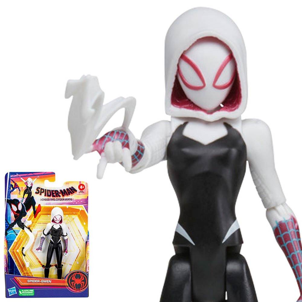 Spider-Gwen is a new Hasbro figure that features the energetic and totally cool web slinger from the Sony’s Spider-Verse trilogy. She’s designed for play and can be given to kids ages 4 and up. She’s depicted in her spidey suit and comes packaged on a cardboard card with some awesome Spider-Man details.