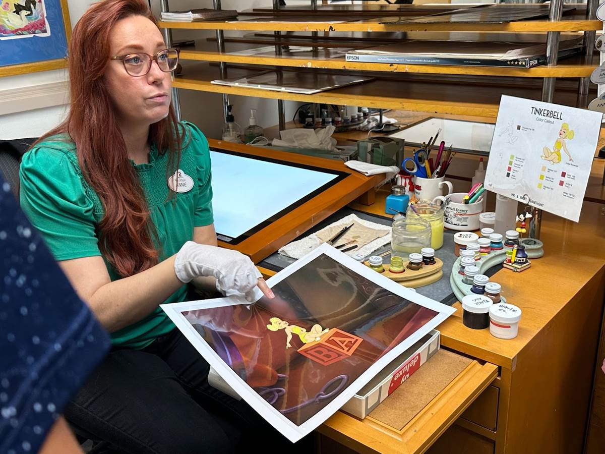 Next, we entered the original Ink & Paint building, most of which is now home to Searchlight Pictures. Inside, the team walked us through the traditional process of inking and painting a cel. Using Tinker Bell as an example. We observed each step of the traditional ink and paint process.