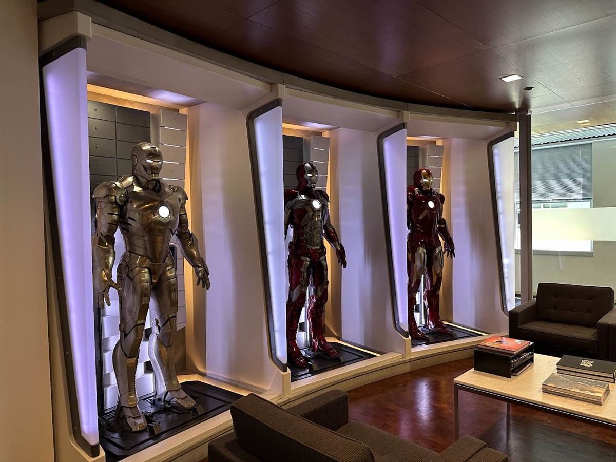 The three Iron Man suits on display aren’t screen-used but were instead created for a Disneyland installation and moved to the office when the parks were done with them. Although quite a few costumes and props were located throughout the studio’s offices.