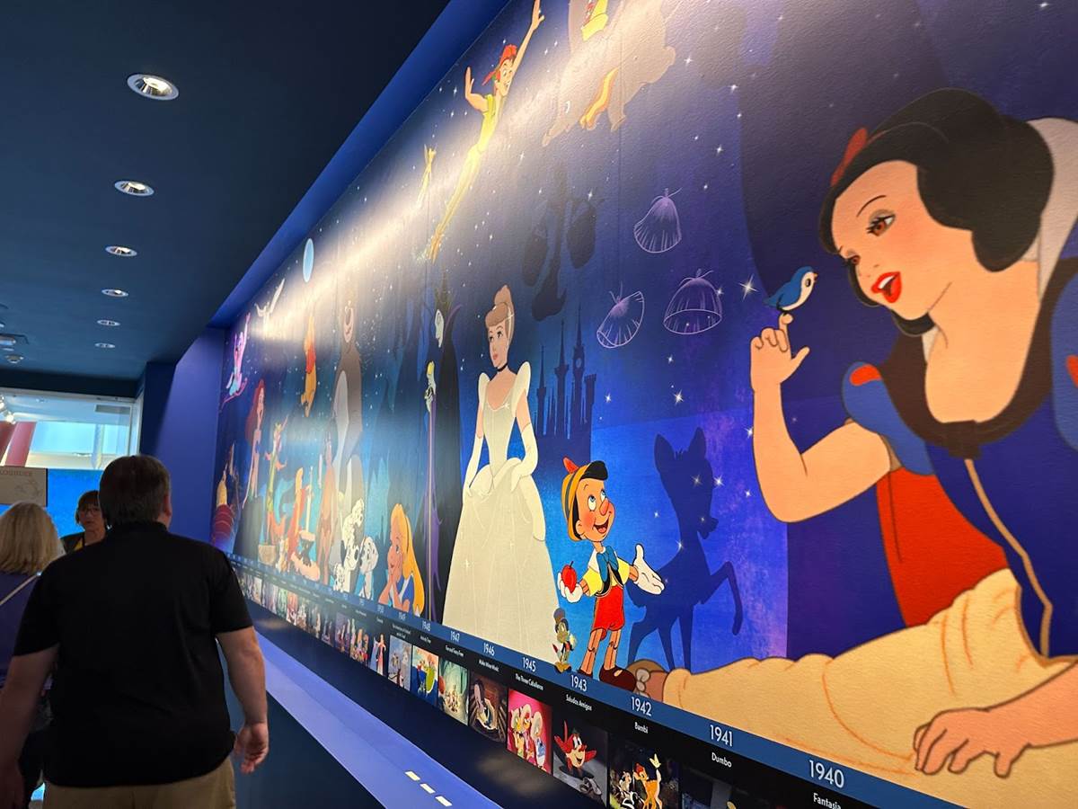 The main entrance hallways are themed to the studio’s 100th anniversary with a timeline of milestones on both sides.