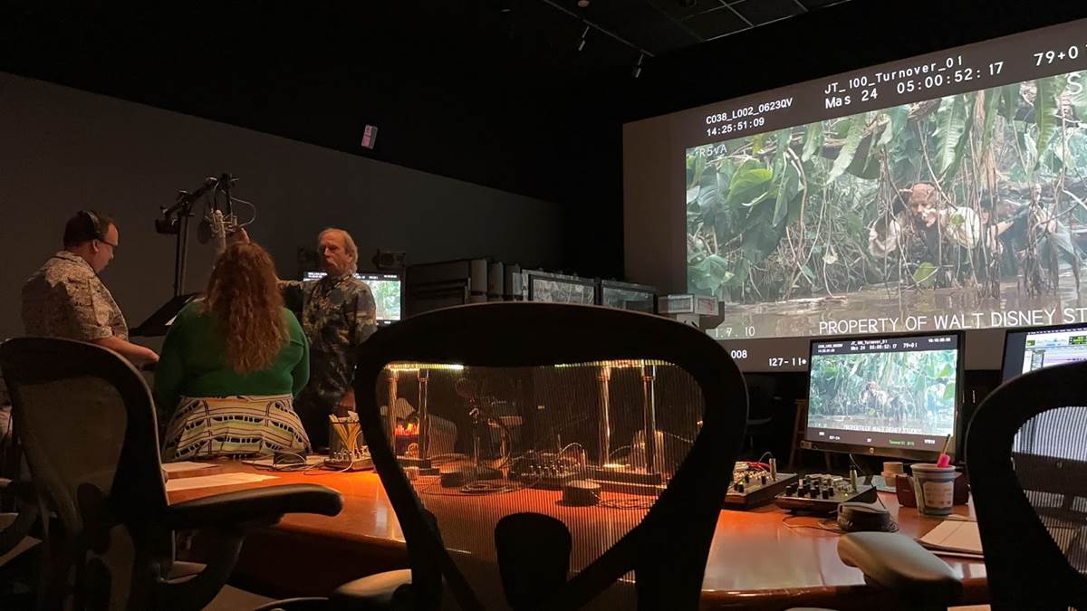 The 75 adventurers were split into smaller groups for tours. Ours began with Stages B and C, which specialize in audio recording and foley. Dawn escorted our group into a recording stage where Oscar-nominated sound mixer Doc Kane gave as an overview of ADR (Automatic Dialogue Replacement). There’s nothing automatic about re-recording dialogue that wasn’t captured clearly on set. Guests were encouraged to step up to the mic to lend their voices to Johnny Depp and Penelope Cruz in a scene from Pirates of the Caribbean: On Stranger Tides. Doc also pointed out a railing that was installed and named the “Kyle Bar" after Kylo Ren, custom built for Adam Driver’s most rage-fueled ADR takes on the Star Wars sequel trilogy.
