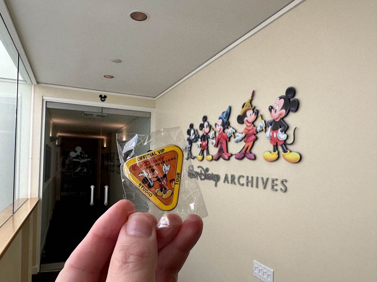 Upon exiting Walt Disney’s office, we were given a pin with the old Walt Disney Productions logo with a border commemorating this “Official VIP Studio Tour" (Note: This is not the Adventures by Disney pin of the day).