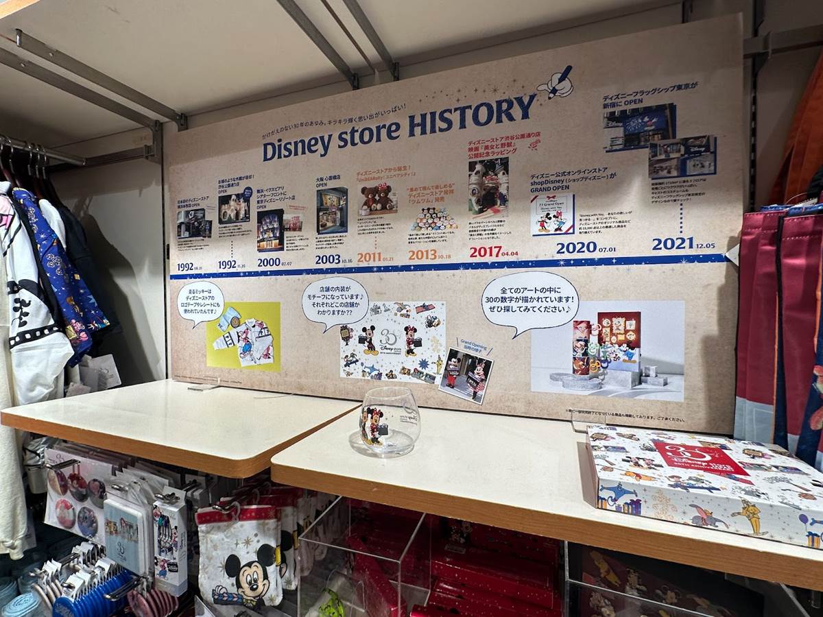 First, Disney Store Japan is celebrating its 30th anniversary (the first actually opened in 1992, but you know how Disney celebrations go). This milestone is celebrated in some of the store’s decor: