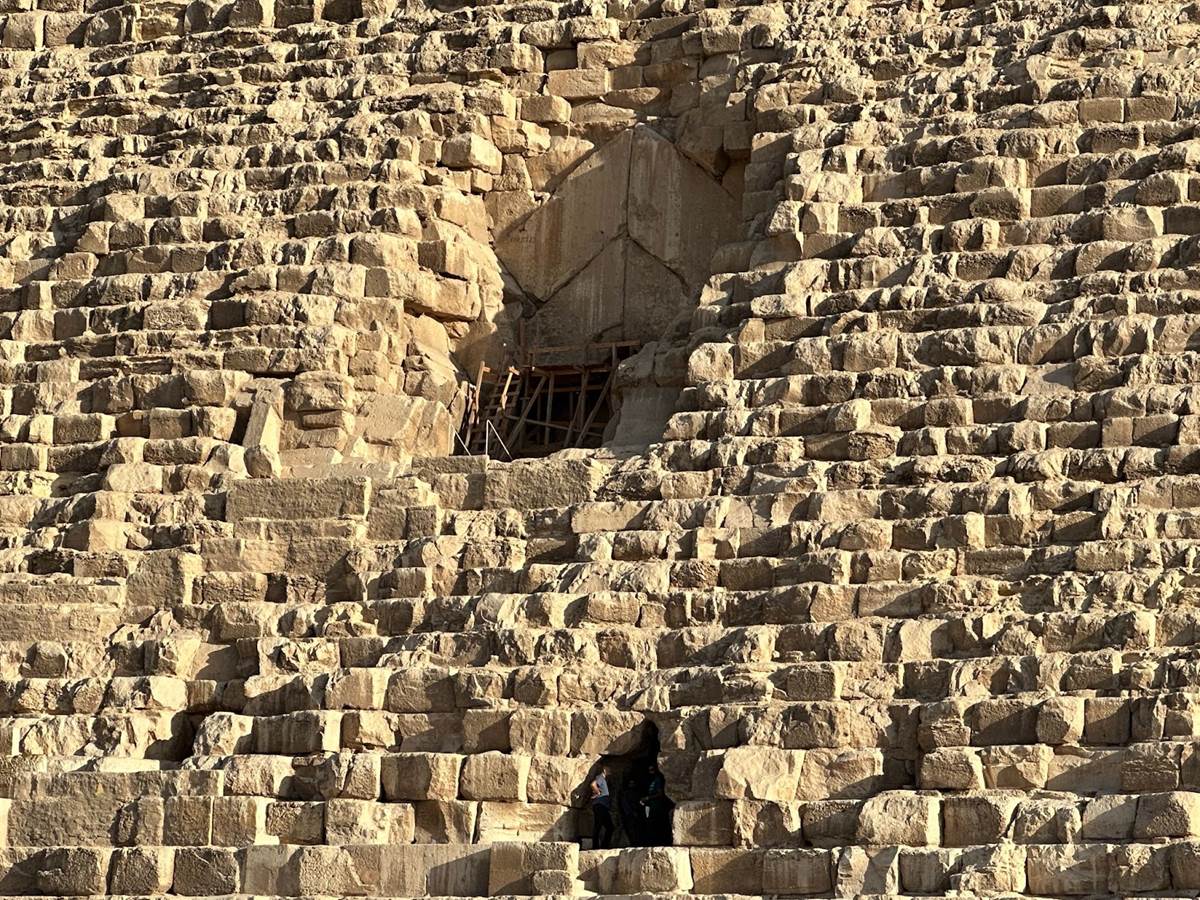 Our tour finished at the Sphinx. We were allowed to go past the typical walking platforms, beyond which no photos were allowed. This allowed us to stand between the giant guardian’s front paws and even walk around to see its tail. Between its front legs is the Dream Stele, a marble slab added nearly a thousand years after the Sphinx was carved, which depicts a second one. Egyptologists are still searching for a symmetrical companion to the famous statue.