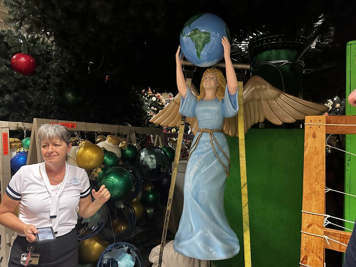 As a special surprise, we were allowed to peruse a few ornament racks and select one to take home. Next, we went to Central Shops (no photos allowed) to learn about how ride vehicles and animatronics are cared for. Of particular interest was a train from Guardians if the Galaxy: Cosmic Rewind, which is already receiving some TLC. It’s ahead of schedule on purpose to get ahead of the routine schedule to keep them performing at their best. We also got to see a Jungle Cruise elephant receiving new skin, feel the difference between types of animatronic skin used, and see what it looks like beneath the epidermal layer.