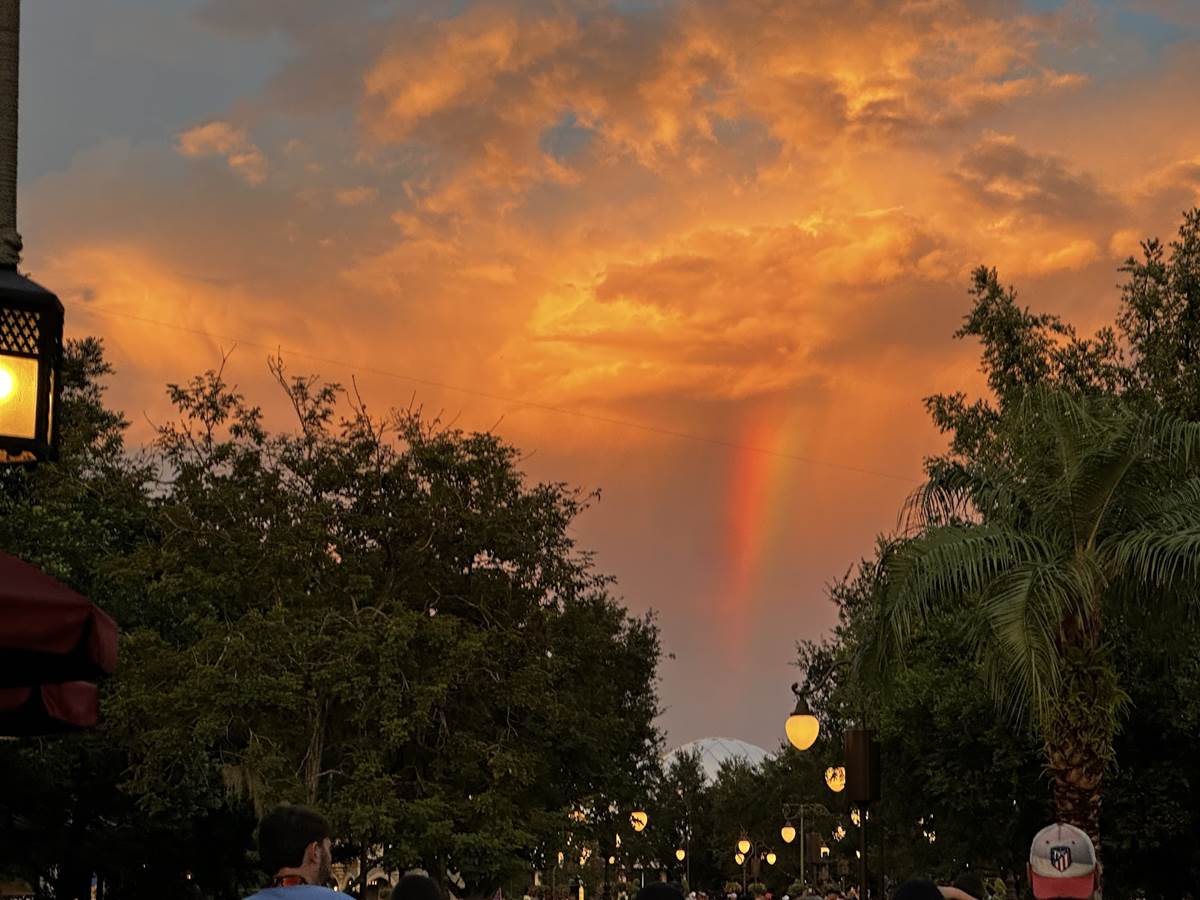 More rain was in the forecast, but thinking like Pollyanna, the good thing is you get rainbows after. This one looked like it was shining upon TRON Lightcycle / Run. Of our group of 10, we were the last 2 standing for Happily Ever After, the nighttime fireworks spectacular, which we enjoyed from the VIP viewing area typically reserved for Guests with a VIP guide.
