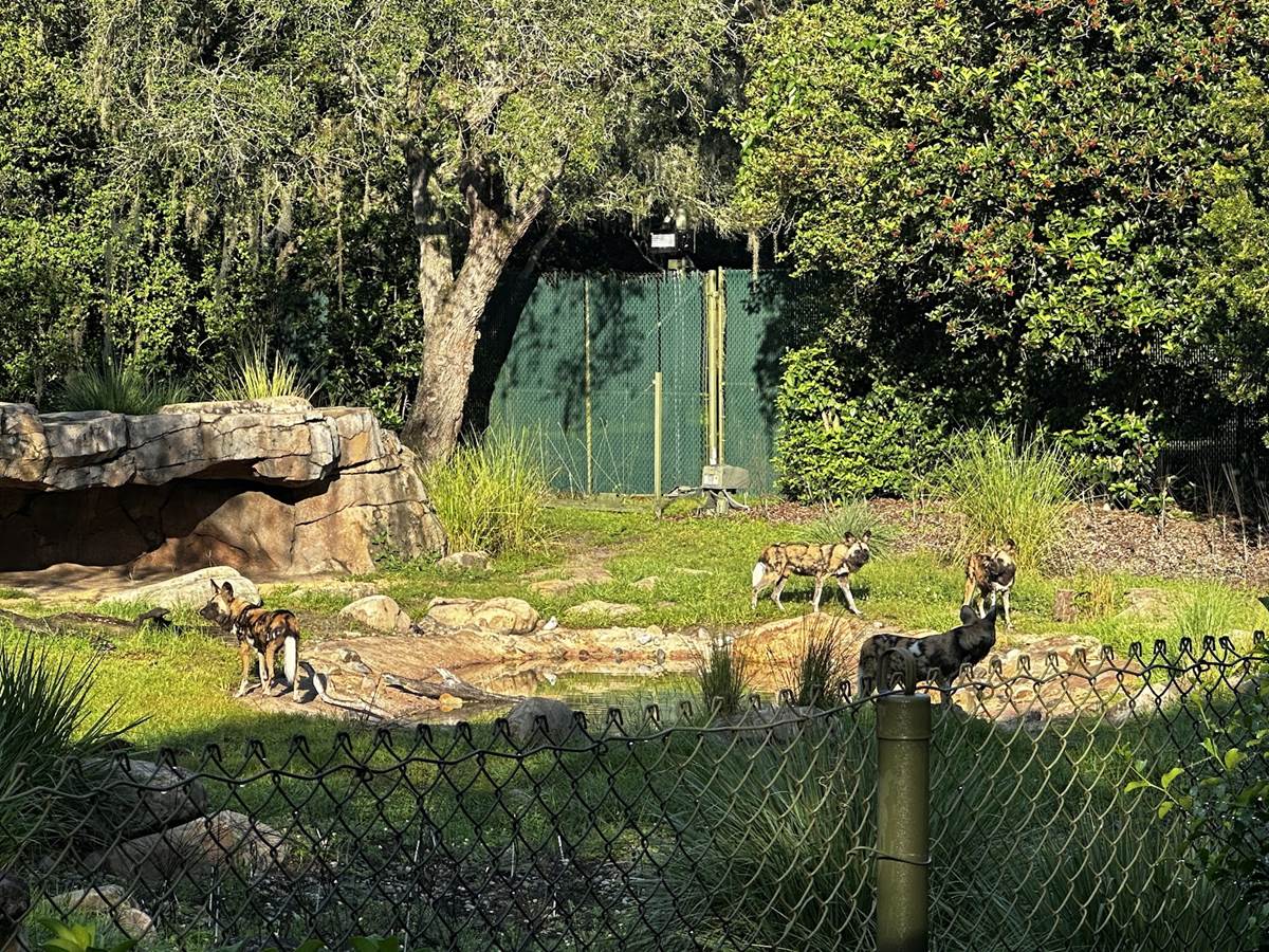 Coffee and pastries helped wake us up at the Grand Floridian Convention Center, where Disney Security took care of our bag check before boarding a bus to Disney’s Animal Kingdom. We got there at 7:30 am before the park opened for a first ride experience on Kilimanjaro Safaris. But this wasn’t your typical ride, as each vehicle had a member of Disney’s animal programs taking the microphone to give us a more intimate look into the lives of these amazing creatures. The animal programs team also delighted us by waiting for our vehicles to arrive to feed the Painted Dogs their meat bones.