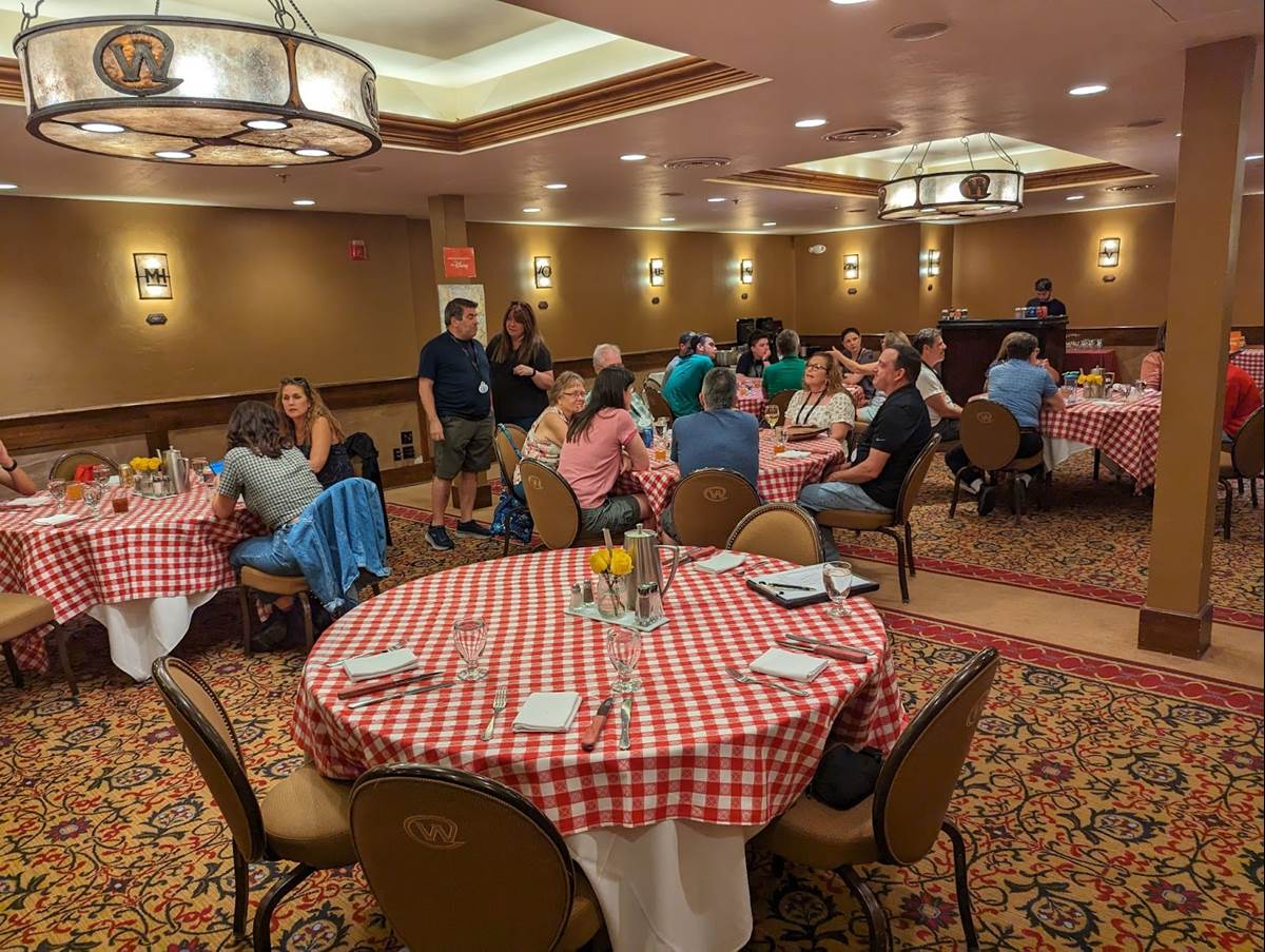The first night’s dinner was a buffet held in a conference room at the Wort Hotel. There were about five large tables, so everyone had to share with other guests we didn’t yet know. Seating was not assigned and my family ended up at a table with a couple, and with the only solo traveler. Conversation with our tablemates came easy, helped by our common interest in Disney.