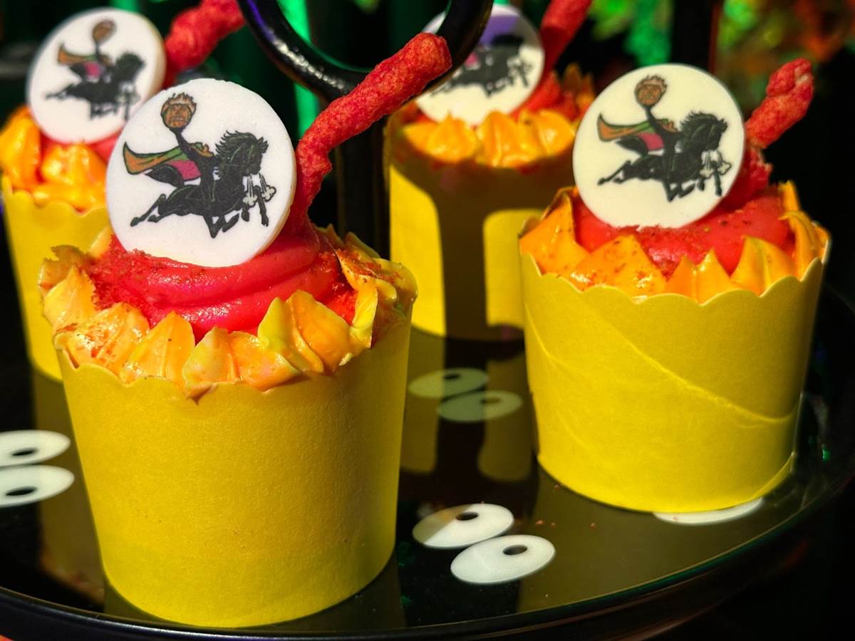 Don’t lose your head over the Headless Horseman Cupcake. Fittingly available at Sleepy Hollow, this cupcake has a few tricks up its sleeve with a spicy cheese-flavored snack (similar to a Flamin’ Hot Cheeto) not only as a decorative garnish, but also blended into the yellow cupcake topped with cream cheese buttercream.