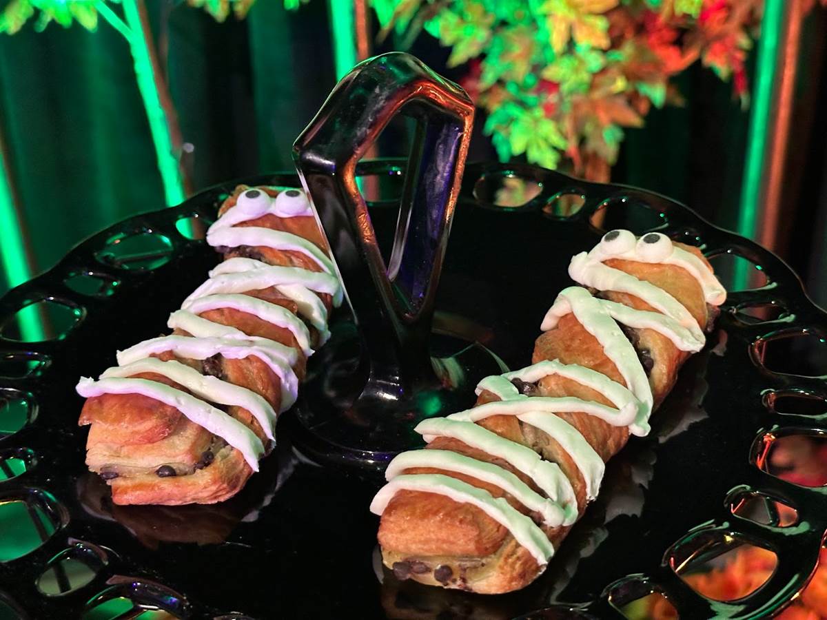 The Cheshire Café is surviving up a spooky twist on the Cheshire Cat Tail pastry. The MMMummy Treat is a flaky pastry filled with chocolate-hazelnut filling and topped with white icing stripes and sugar eyes.