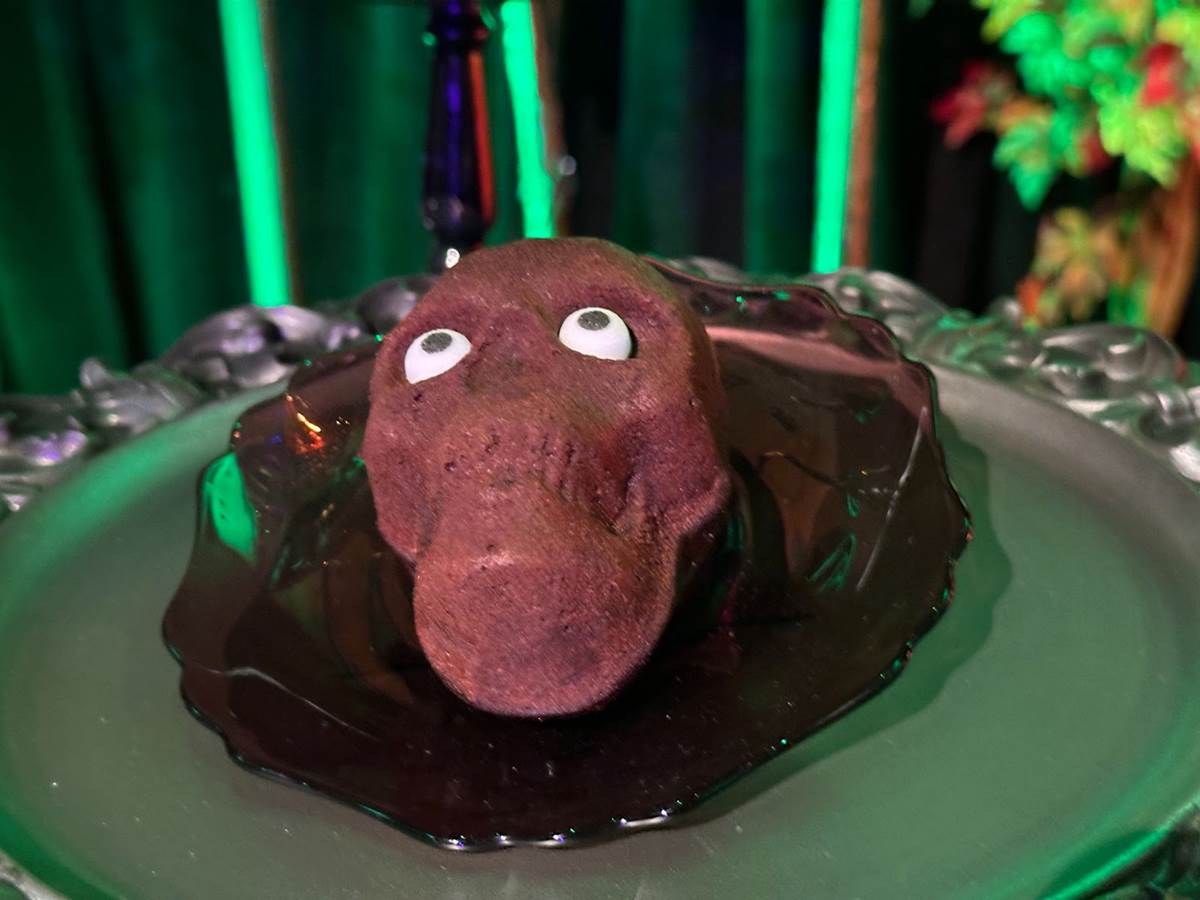 If the Zom-Beatz Bash in Tomorrowland has you dragging your feet, pop into Cosmic Ray’s Starlight Café for some Zombie Fingers! These almond cookie fingers are served in a jar of Key lime pie white chocolate ganache with salted caramel crisp pearls, and sugar eyes.