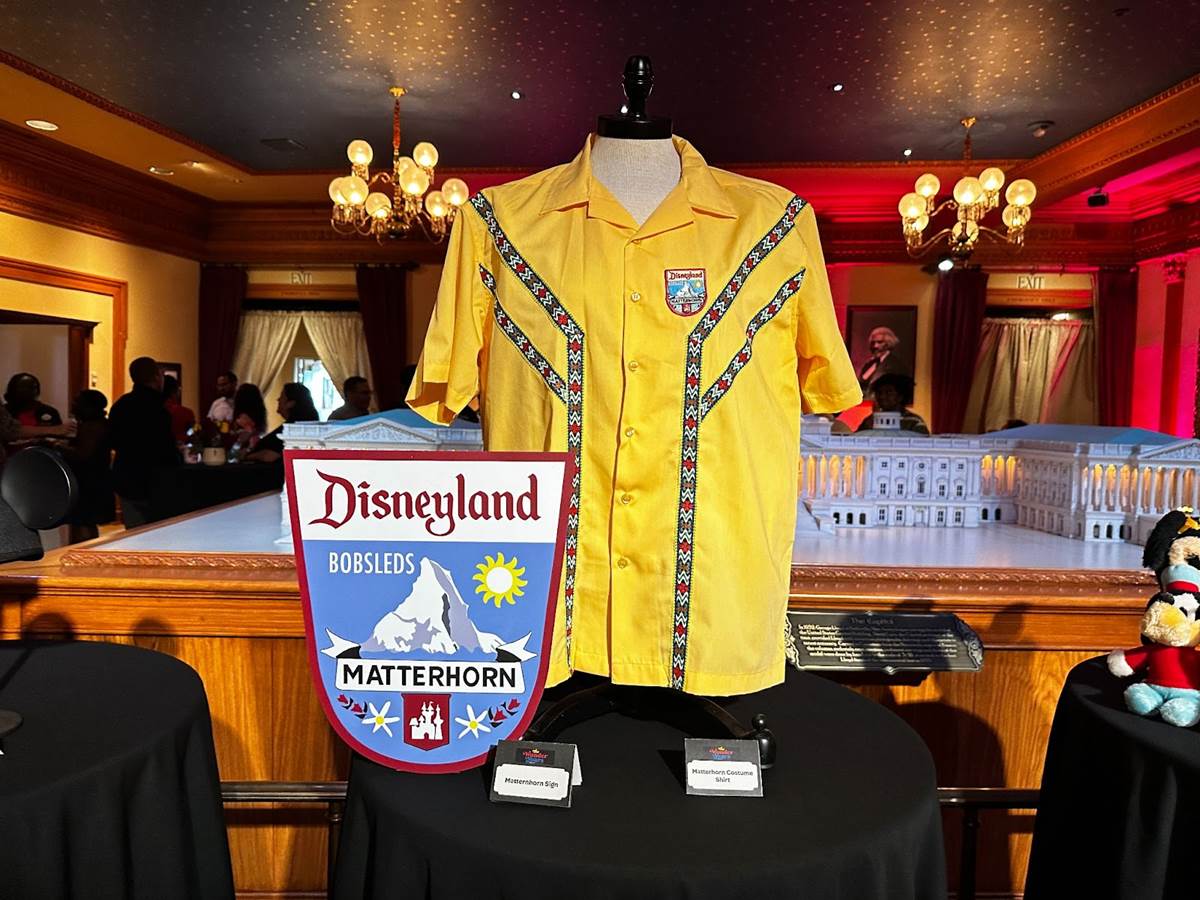 Tables in the lobby of The Main Street Opera House hosted an exhibit of vintage items from the park, some of which can be seen in the episode. For example, there’s a moment in which Kim and Bruce ride The Matterhorn. Viewers will see a Cast Member dispatch their bobsled wearing a replica of a costume from the late 1960s, which was on display.
