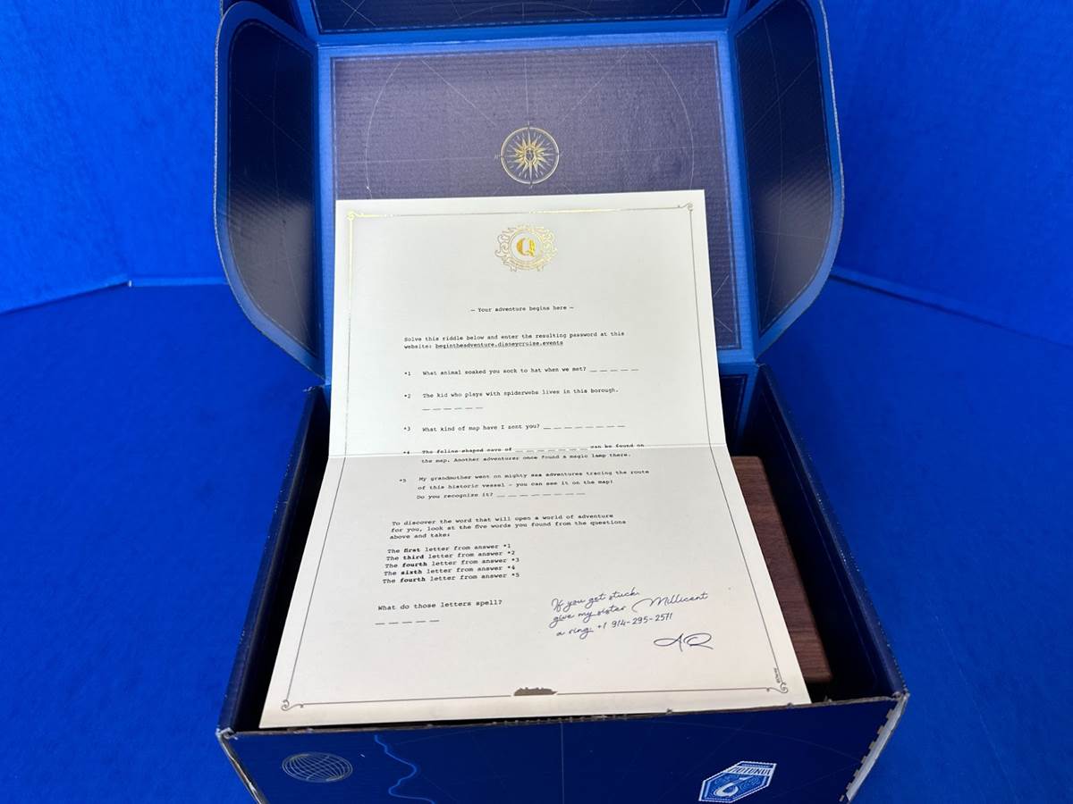 Disney Cruise Line sent us a special treasure chest today, one that contains clues about the next ship to join the fleet, the Disney Treasure! More details are guaranteed to be revealed on Wednesday, August 30th, at 11:00 a.m. ET. But for now, take a look at what we’ve found to wet your whistle.
