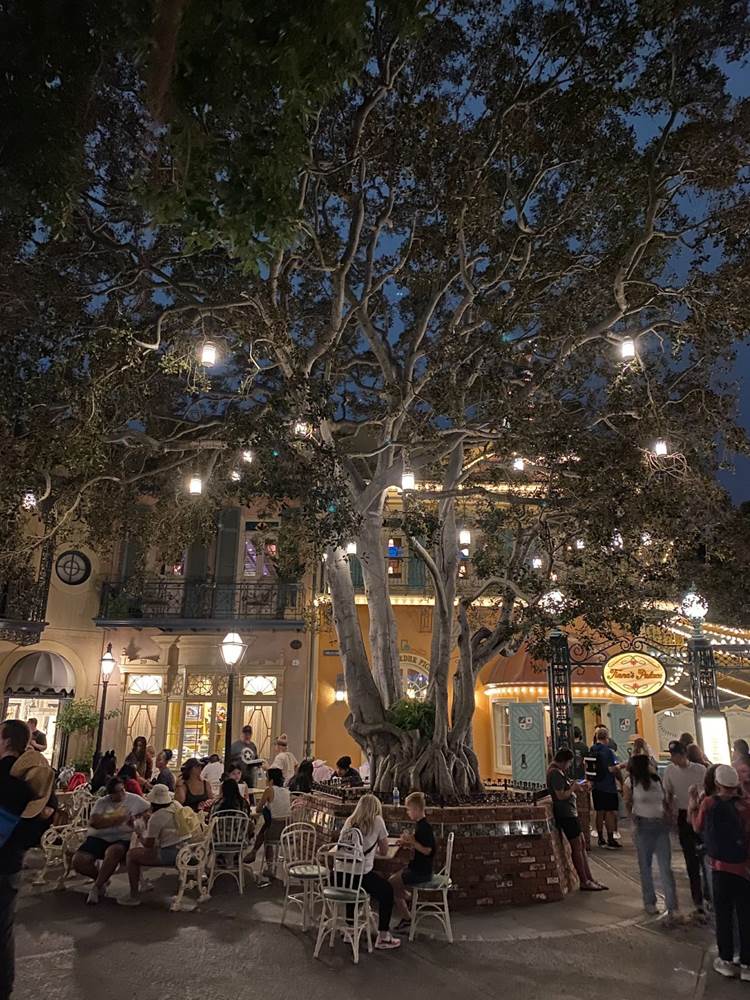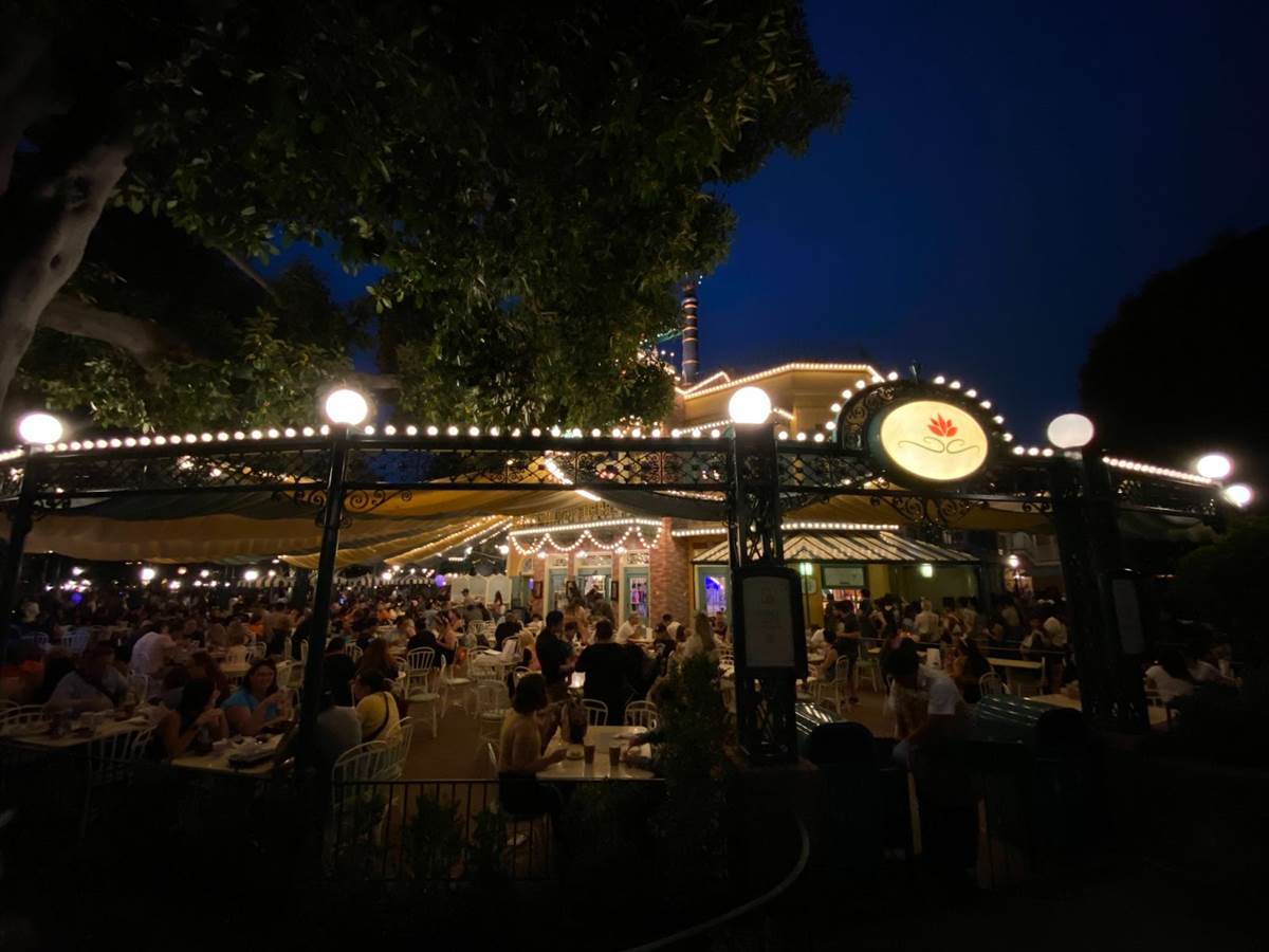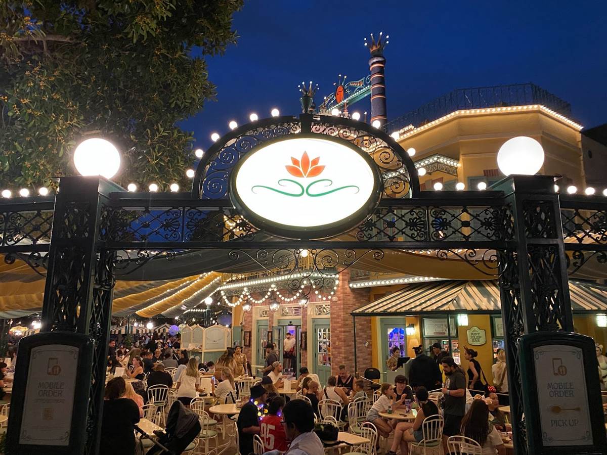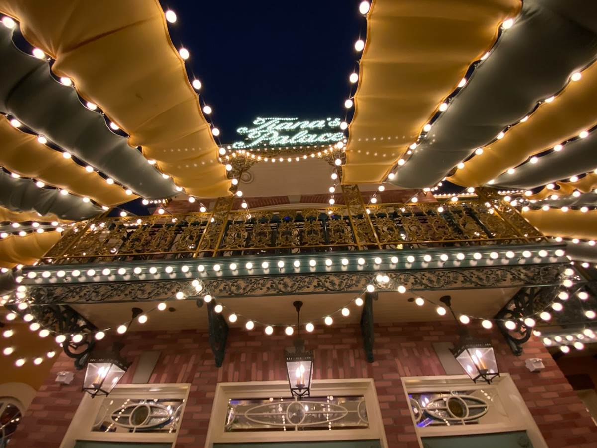 Thankfully I was able to return to Disneyland yesterday and get a taste of what Tiana’s Palace looks like after dark with its lights turned on. But first, I stopped by the Princess and the Frog-themed restaurant during the daytime to get photos of the views I couldn’t capture last week due to the construction walls.