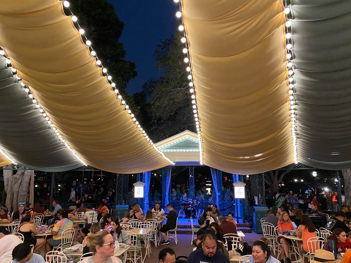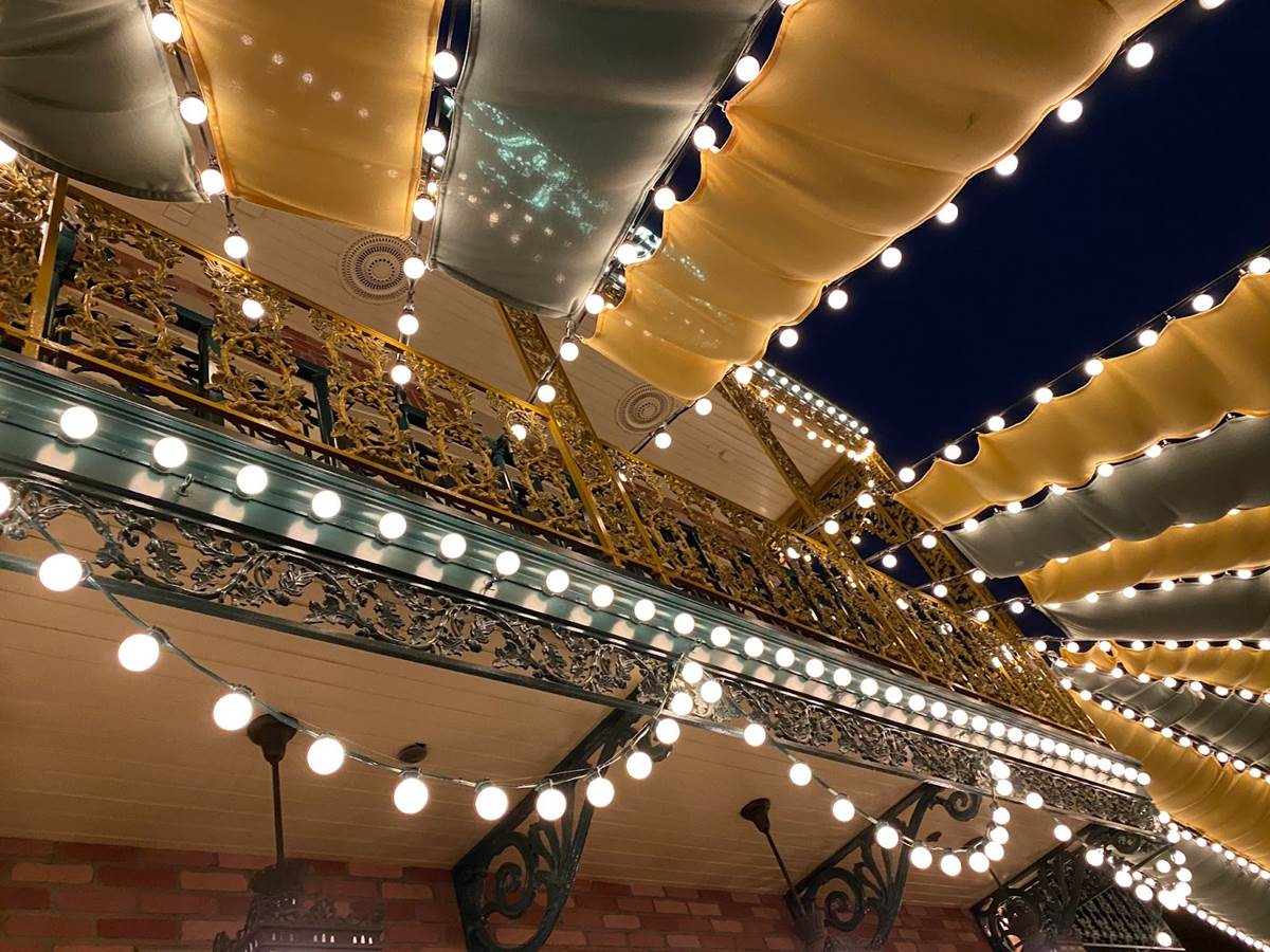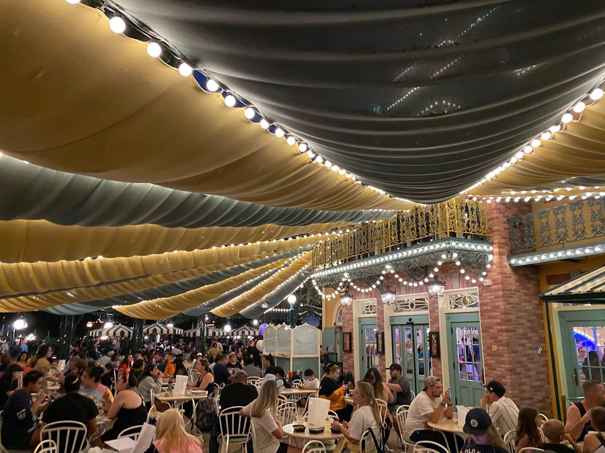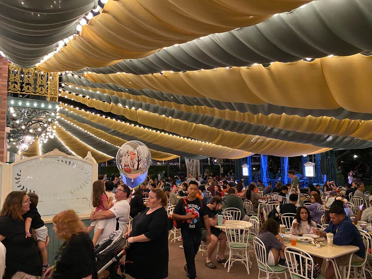 Thankfully I was able to return to Disneyland yesterday and get a taste of what Tiana’s Palace looks like after dark with its lights turned on. But first, I stopped by the Princess and the Frog-themed restaurant during the daytime to get photos of the views I couldn’t capture last week due to the construction walls.