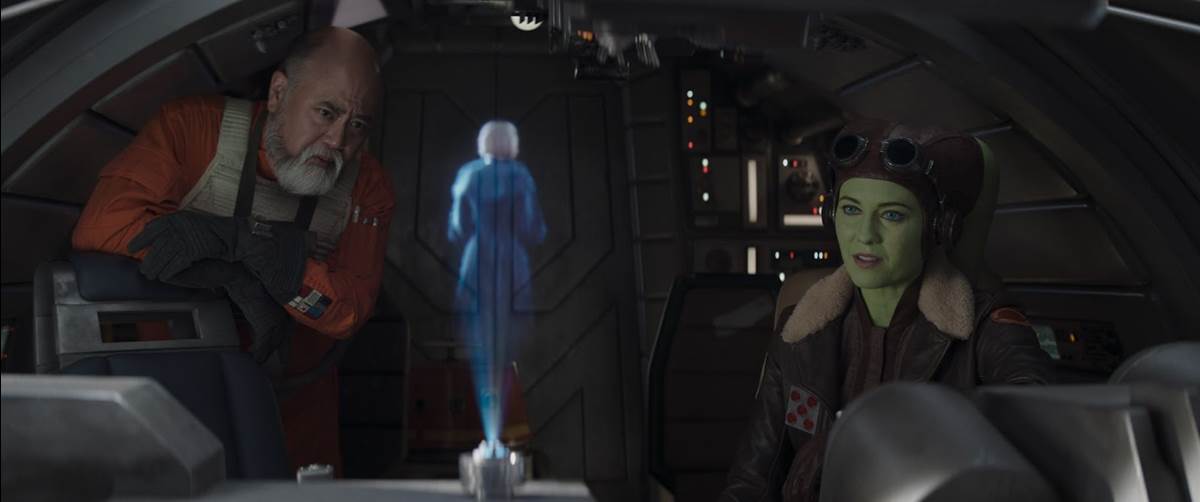 There, Tano encounters her old master– Jedi Knight Anakin Skywalker (guest star Hayden Christensen, who made his return to Star Wars last year in the Disney+ Obi-Wan Kenobi series), who offers Ahsoka the opportunity to complete her training, which she walked away from– for some pretty good reasons, by the way– in the fifth season of Star Wars: The Clone Wars. This begins a waking dream sequence in which Ahsoka relives parts of her younger life– here I thought for sure her more youthful self would be played by voice actress Ashley Eckstein, but instead it’s Ariana Greenblatt, who played young Gamora in Avengers: Infinity War (she may be getting typecast as younger versions of alien ladies in Disney properties)– fighting alongside Anakin in the aforementioned Clone Wars. So the design of all this, on Anakin’s part, seems to be to teach Ahsoka some sort of lesson, but what exactly that lesson is has been a heated topic of discussion between my wife and I since the moment we walked out of the movie theater hosting the Fan Event screening of “Shadow Warrior." The best we can figure is that Skywalker is trying to get across that the Jedi are more than the warmongers that Baylan Skoll (Ray Stevenson) made them out to be, and that Anakin himself is more than what he would become– namely the Sith Lord Darth Vader. What we’re not quite sure about is how exactly he demonstrated those ideas. Maybe I’ll pick that up on a second viewing.