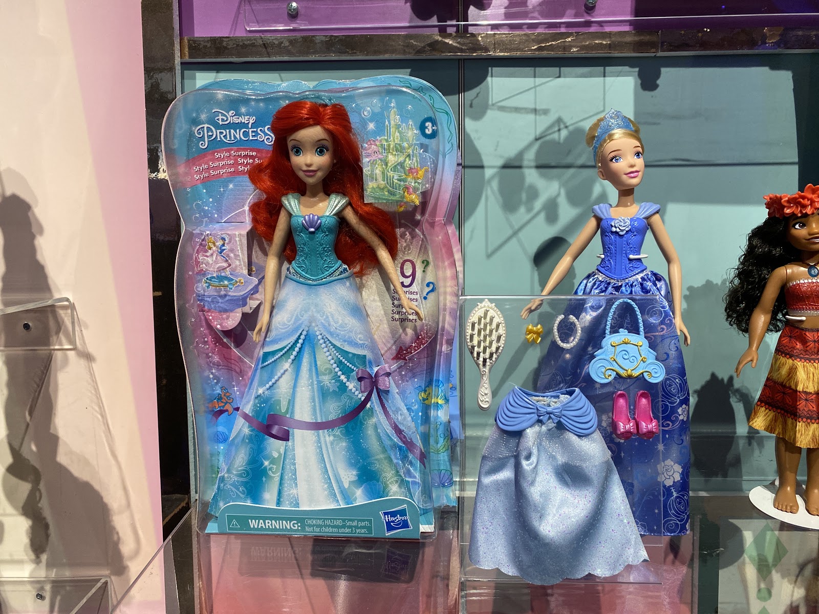 Ariel and Cinderella are coming in the “Style Surprise” series where kids get to unbox extra surprises within each doll. They’re wearing a cardboard skirt in the package that has to be peeled away in pieces to reveal additional goodies. There are nine surprises in each package.