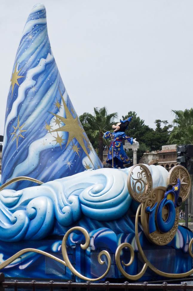 Their spell seemed to work because Mickey’s float expanded to become a sorcerer’s hat and then a bunch of performers, dressed as if they were cast members, all pulled out their own hats which they danced around in the rest of the show. Along with all the cast members, at least 20 different characters came out, with a good handful of them also wearing the magician outfits.
