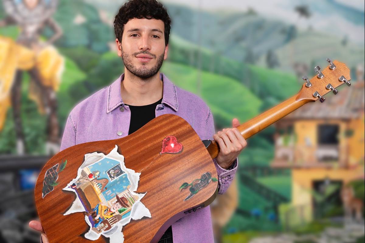 - 'Together Forever' painted oil guitar by Sebastian Yatra and Roberta Lobeira
