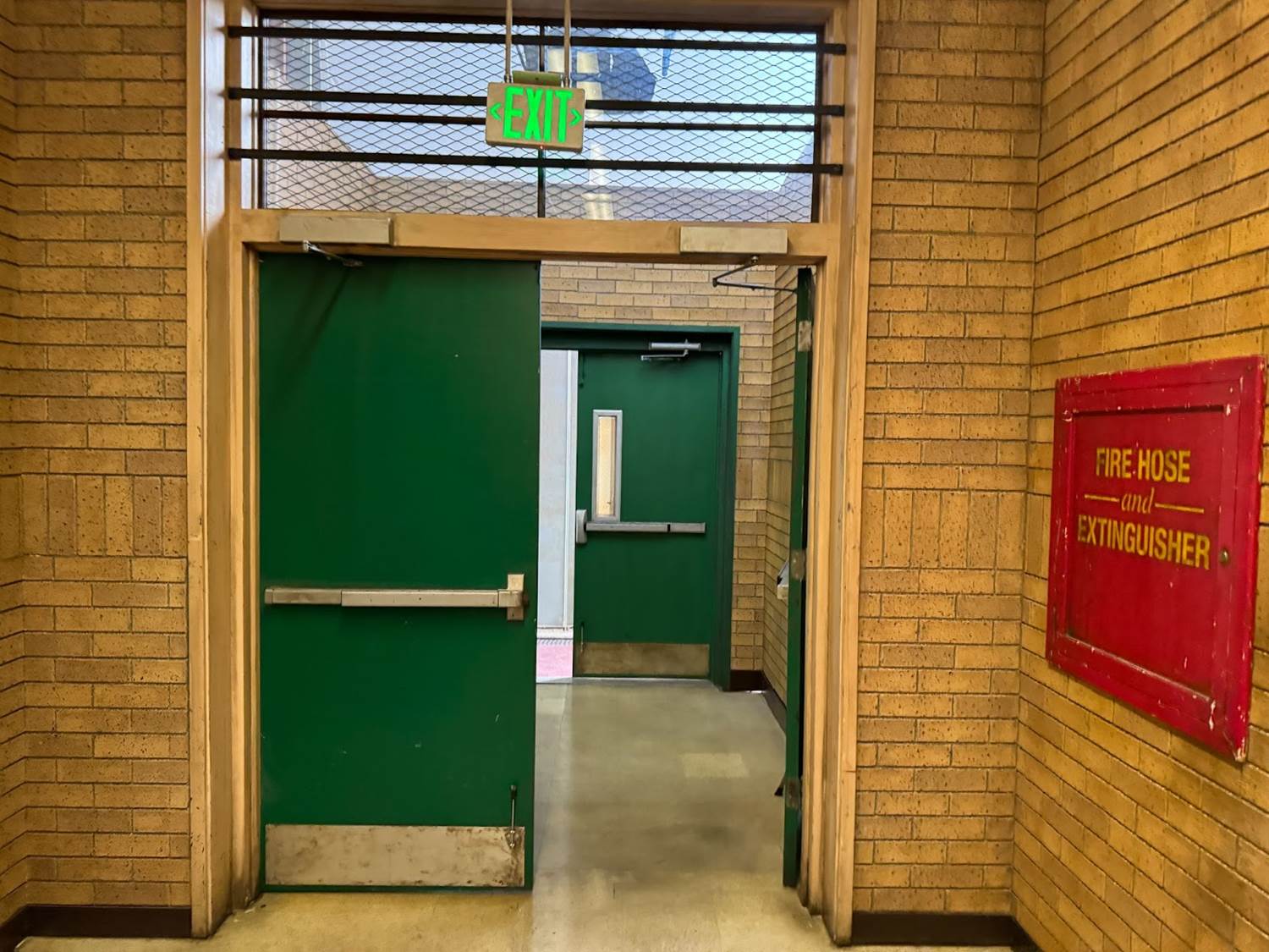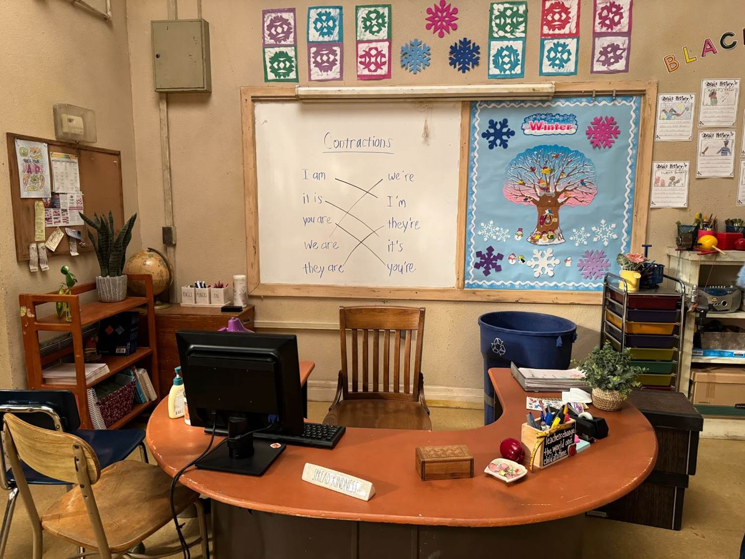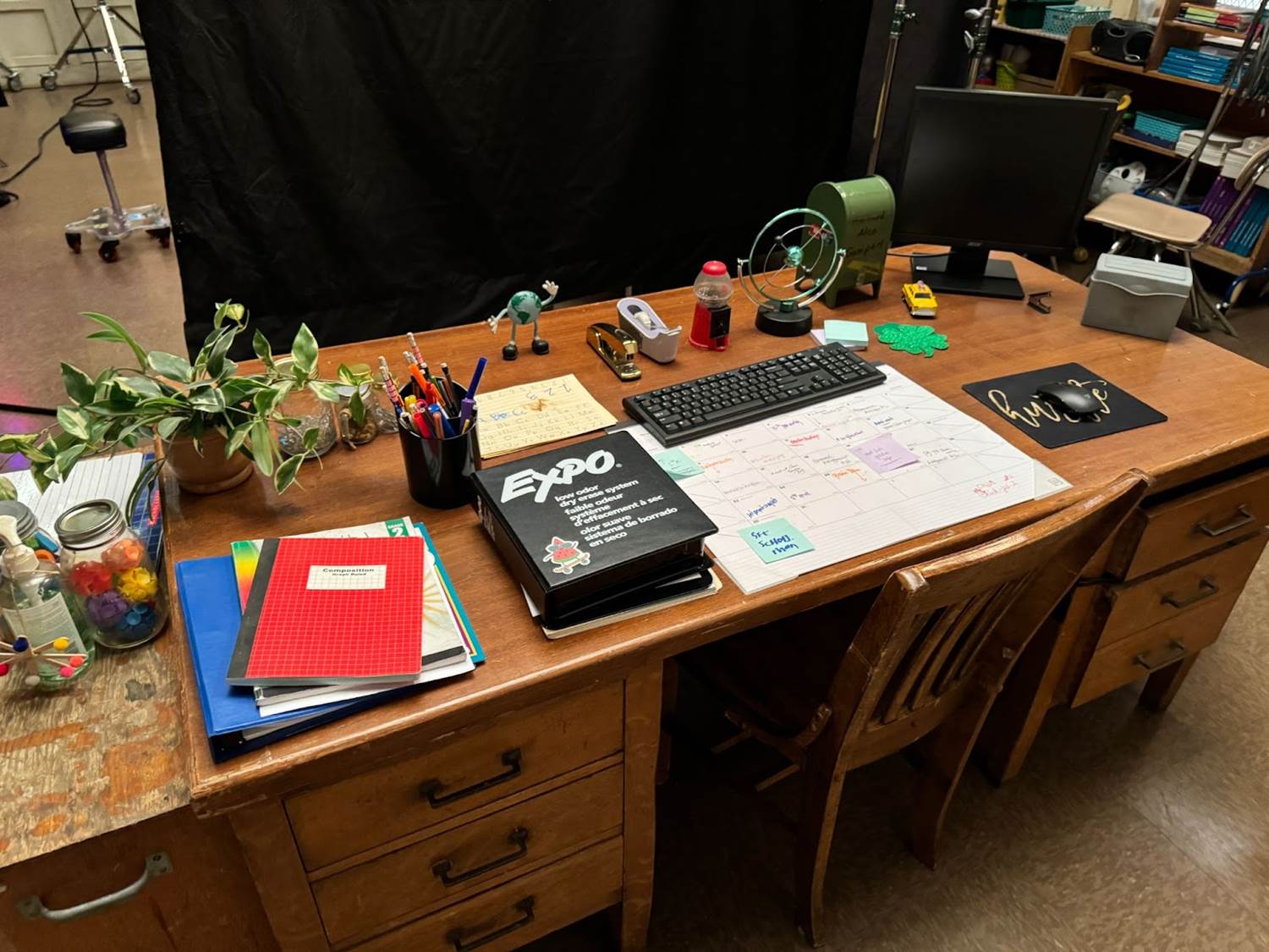 Much of Gregory Eddie’s classroom was partitioned off for interviews, but we were able to step behind his desk.