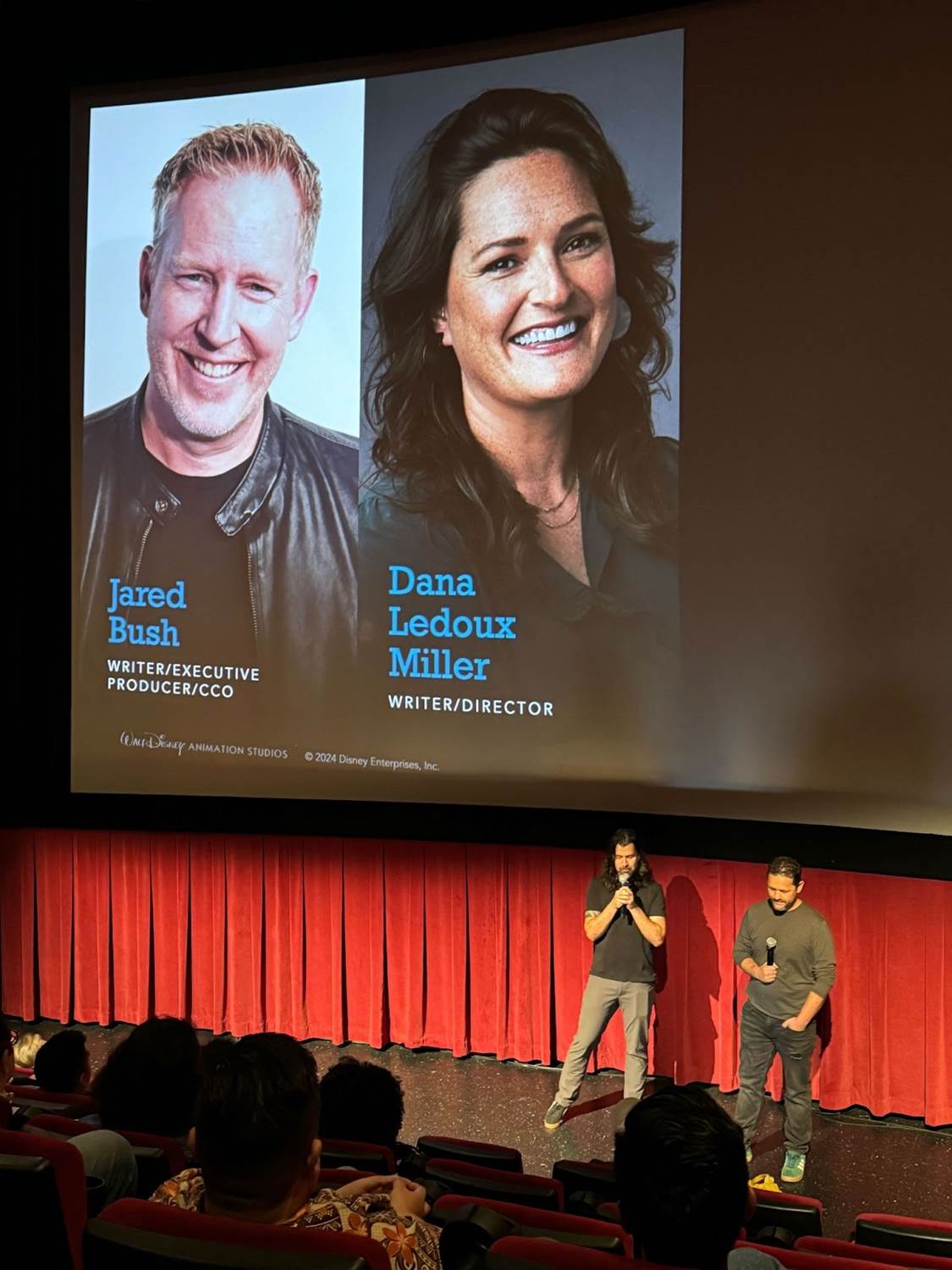 Derrick and Hand started off the show by talking about their history at Disney Animation, and how they both went to CalArts together before that. Previously they have worked on Raya and the Last Dragon, Encanto, Zootopia, Big Hero 6, and the first Moana movie, among other Disney films. Derrick mentioned that sharing his Samoan heritage through this new movie “is a true gift." They also talked about how “animation is the most collaborative of all art forms," citing the other talents who contributed to this project, including screenwriter and executive producer Jared Bush, writer/director Dana Ledoux Miller, producers Christina Chen and Yvett Merino, songwriters Abigail Barlow and Emily Bear, and composers Mark Mancina and Opetaia Foa'i.