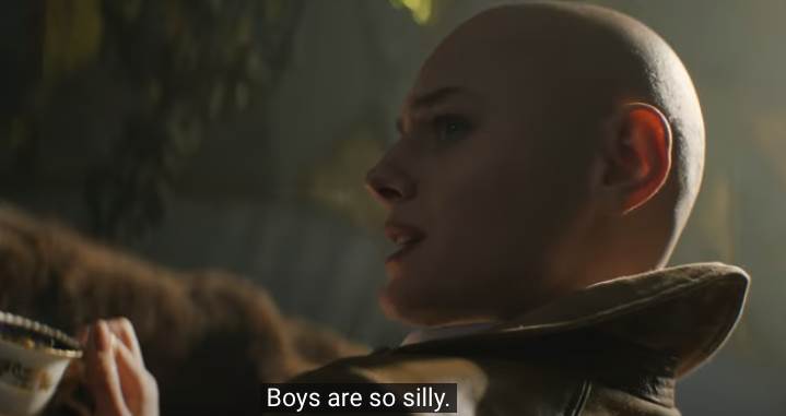 After some more clips of Deadpool and Wolverine fighting, we get our best look at the character yet as she says “boys are so silly." Marvel was careful not to include the character’s name in the closed captioning this time.