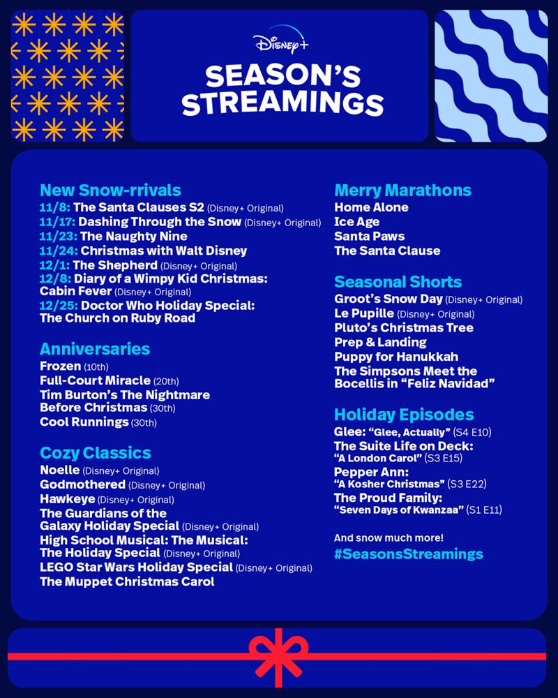 - This holiday season, Disney+ is the streaming home for holiday favorites, new Originals, and the biggest premieres of the year.