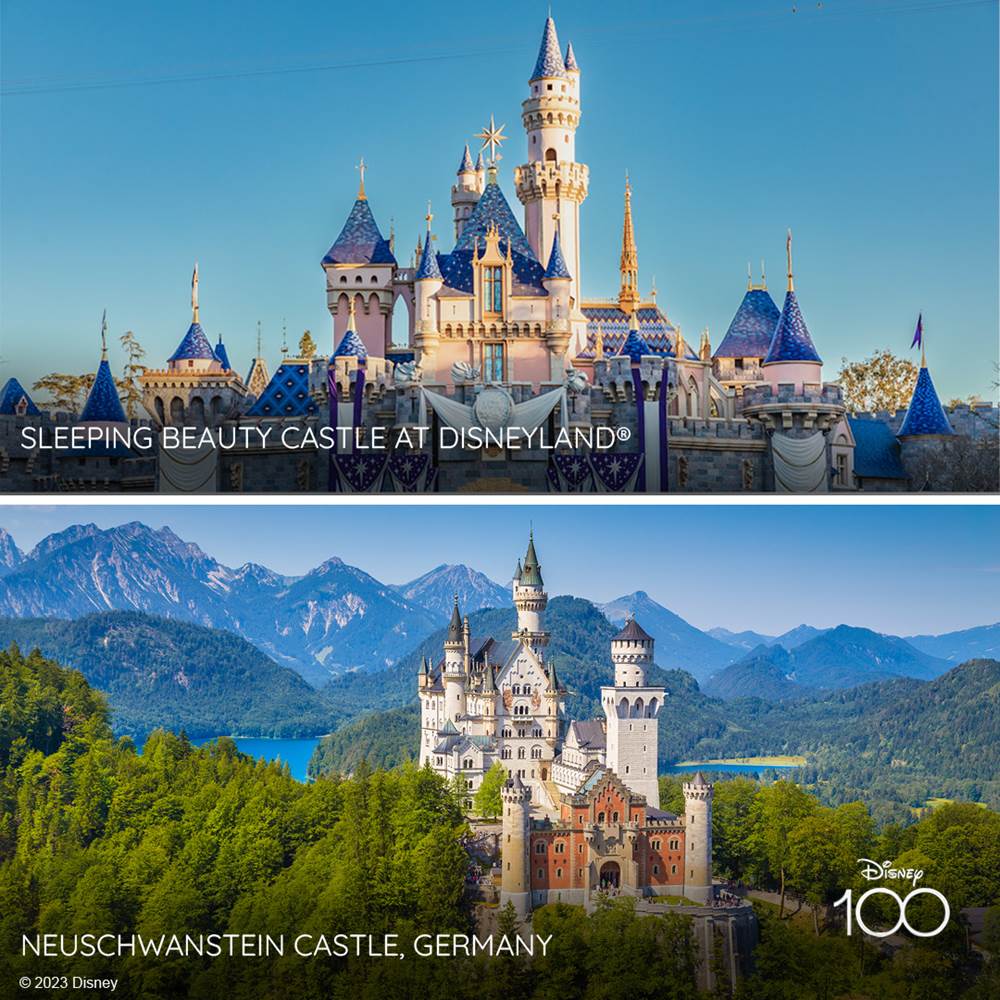 - Sleeping Beauty castle at Disneyland, USA / Neuschwanstein Castle, Germany