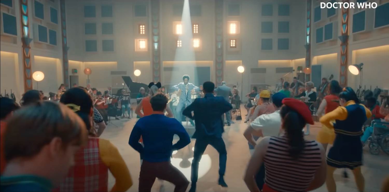 The Doctor is seen in what is likely to be a big musical number, from the 1960s set “The Devil’s Chord."