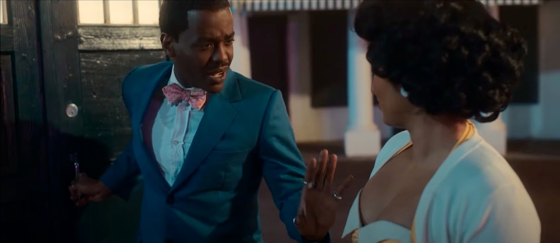 Looking rather dapper in a 1950s-inspired outfit, Belinda calls the Doctor, Scooby-Doo, while he in fact thinks of himself more as Velma.