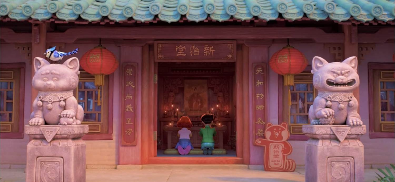 Two red panda statues are proudly perched outside Mei’s family temple. Early on in the film, during an intro montage into Mei’s daily life, Mei happily greets them as Bart and Lisa - a nod to two characters from the iconic Fox show The Simpsons. While the animated classic has been running strong for 35 seasons (and counting), the heyday of the show peaked in the late 1990s. Of course, the fact that Disney acquired Fox in March 2019 may have a little something to do with this prominence pop culture reference.