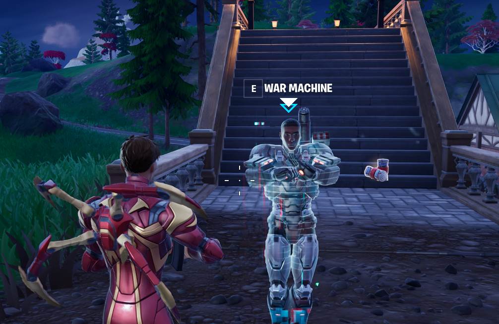 - Eliminate adversaries using War Machine’s Arsenal – This one is also pretty tedious to complete. Landing somewhere with a guaranteed Dr. Doom and Avengers chests is a great place to start. I landed at Rebel’s Roost, where there is an Avengers chest on the second floor of the mansion. After locating the Mythic rarity item, players will have to eliminate 5 other opponents to complete the quest. A reminder that henchmen and other AI opponents do count towards the 5 eliminations. After finishing your training, you’ll be prompted to visit Captain Jones.