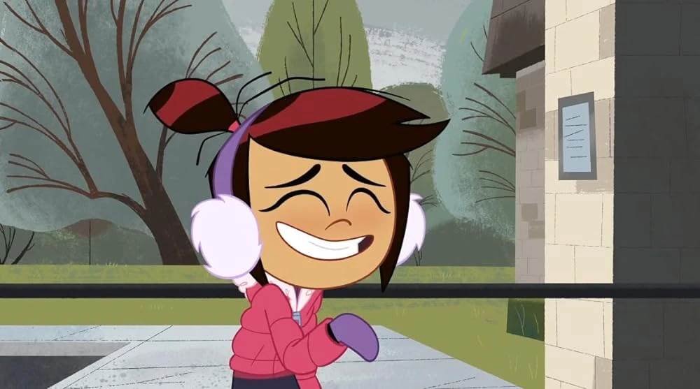 It’s New Year’s Day, and it has to be the perfect day as it sets the tone for the rest of the year. And a perfect Molly McGee day includes Community, Family, and Friends. So to begin, she sets out for a student/faculty hockey game at the Brighton pond. On her way out, she steps into a giant pothole, splashing into freezing water and setting her perfect day immediately off the rails.
